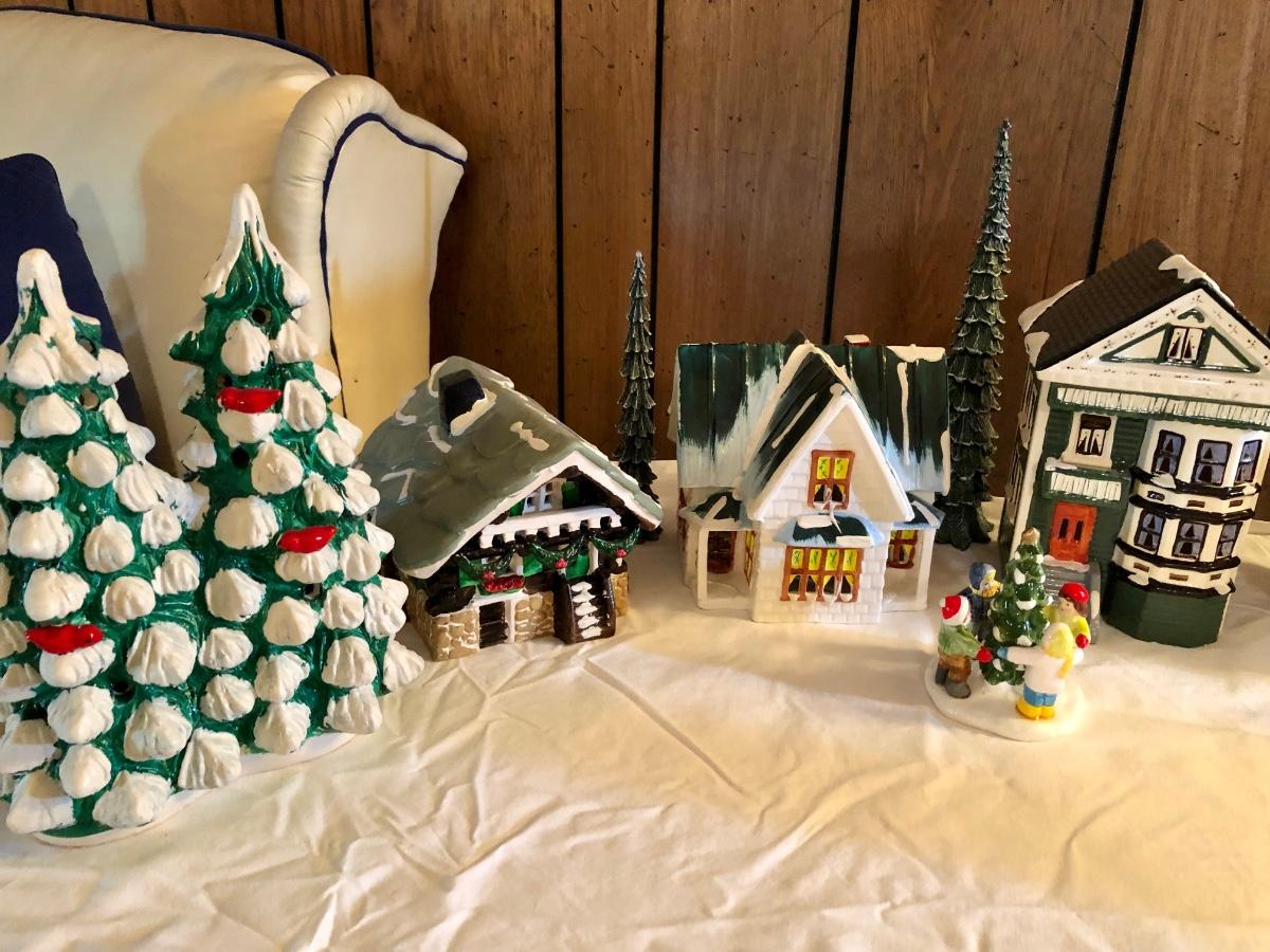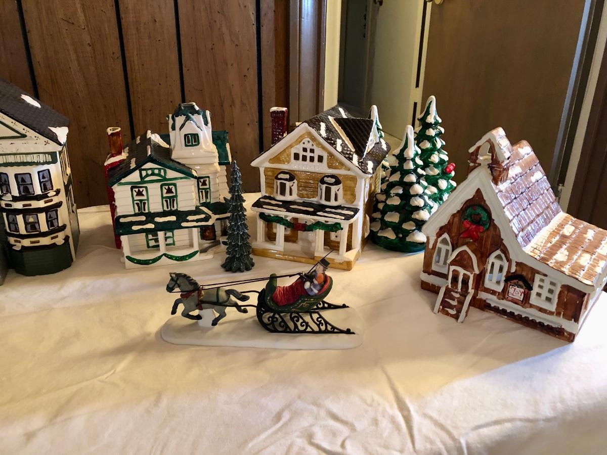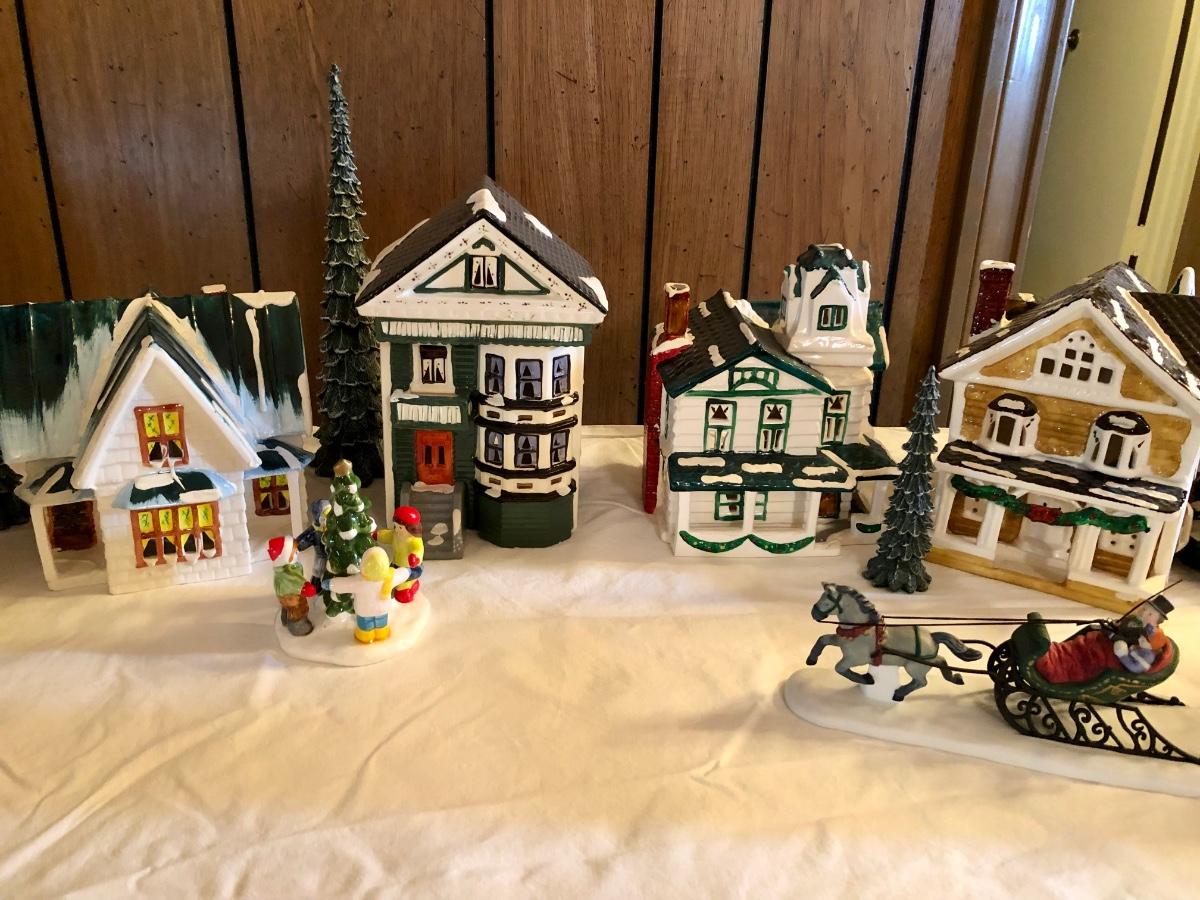 Large lot of vintage department 56 houses with original lighted cords. All pieces are in mint condition