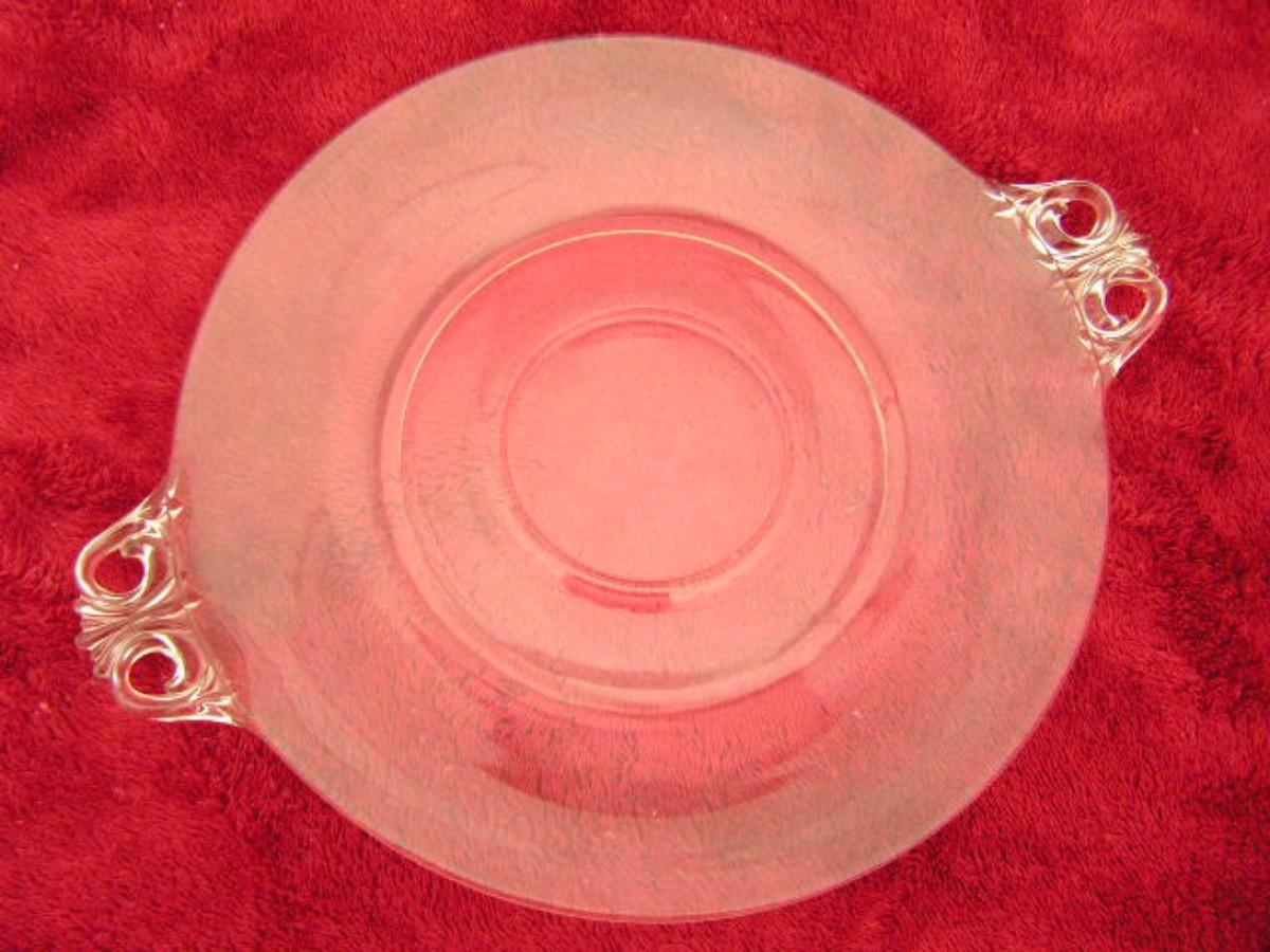 Vintage depression era glass platter w/ear handles,