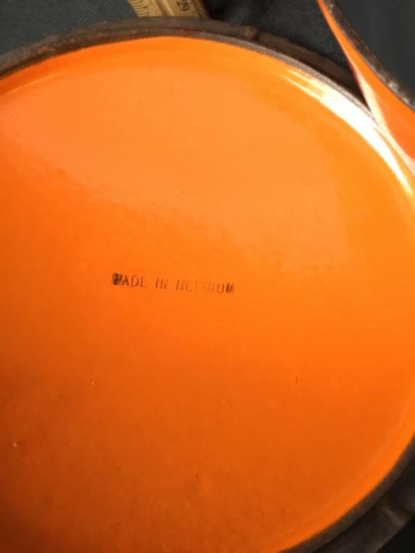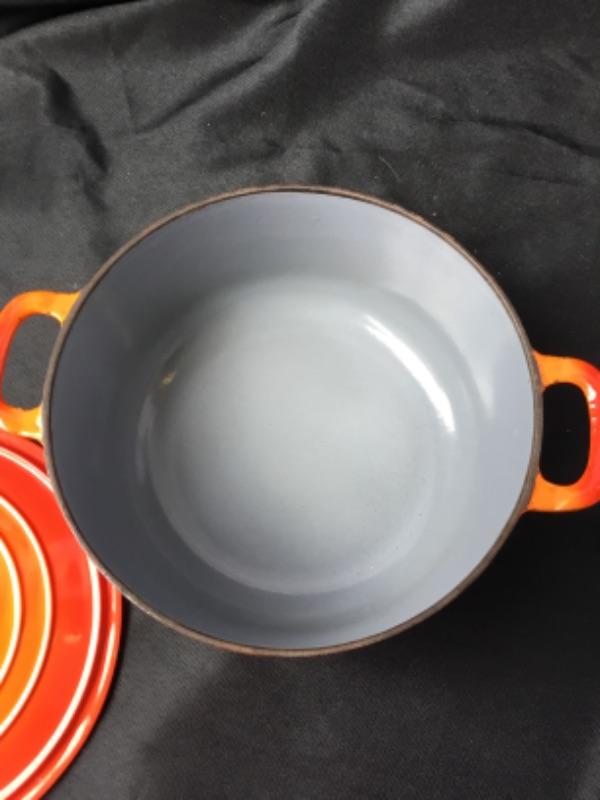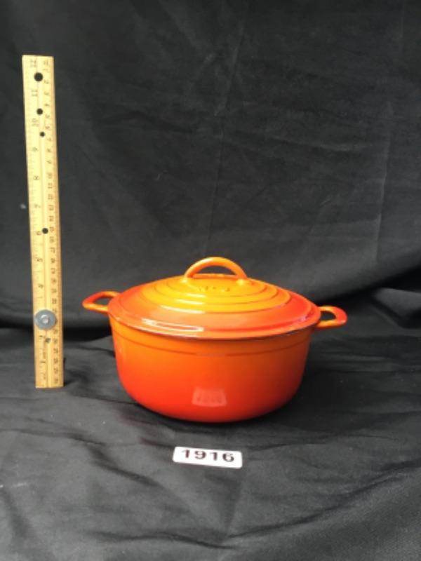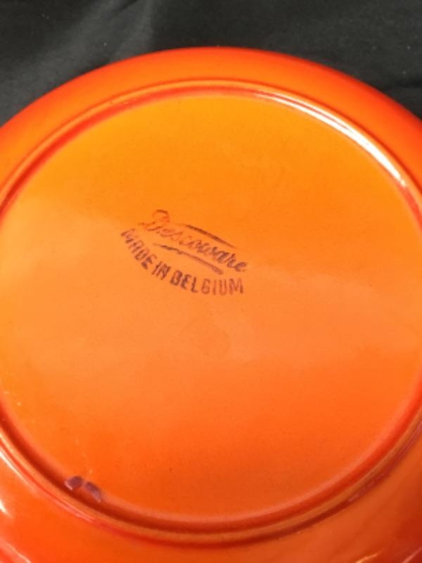 Vintage Descoware Cast Iron Enamel Dutch Oven - Flaming Orange - Lot 1916