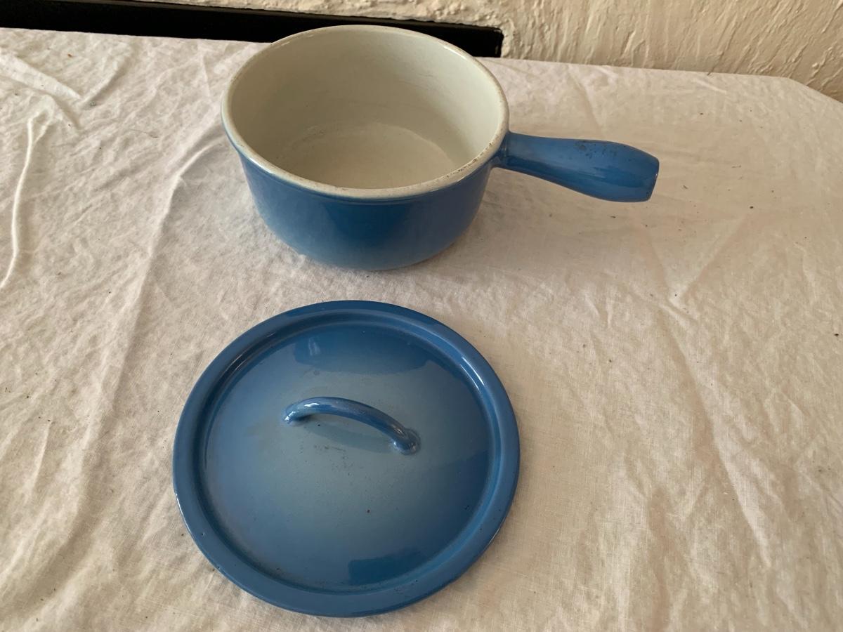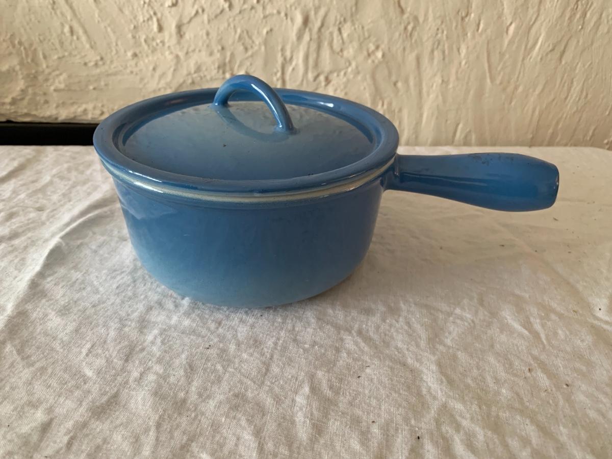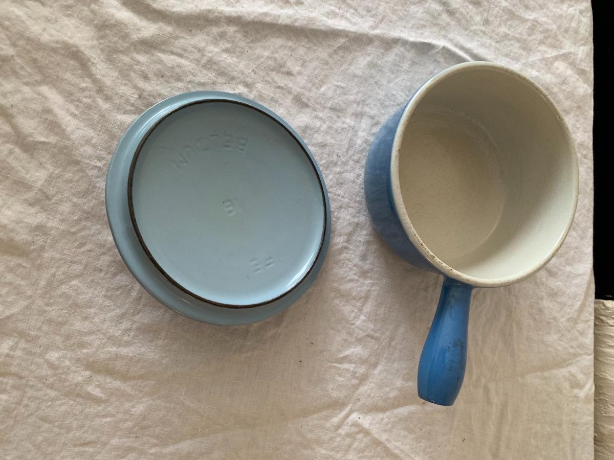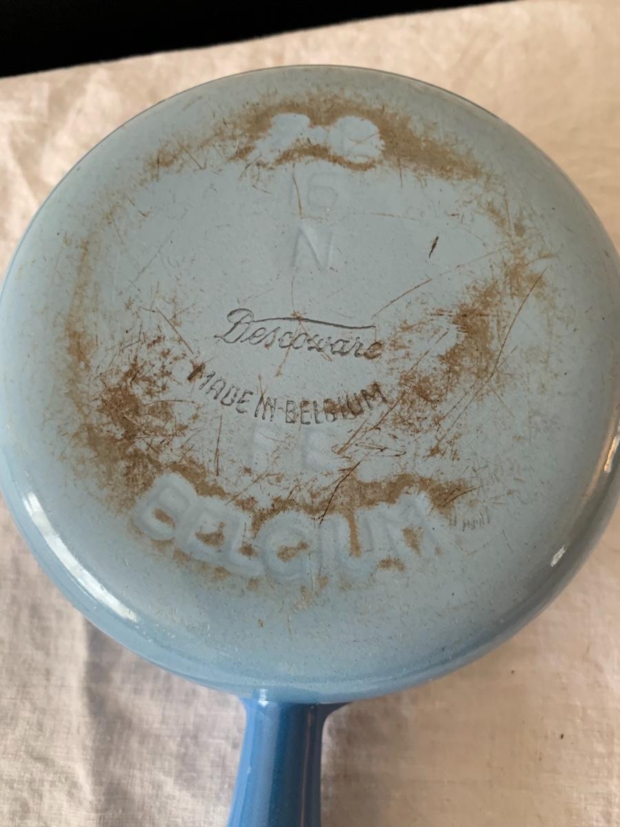 Vintage Descoware 7-B 15 P FE Sky Blue Cast Iron Enamel Belgium Saucepan #16 Lid, in gently used condition.