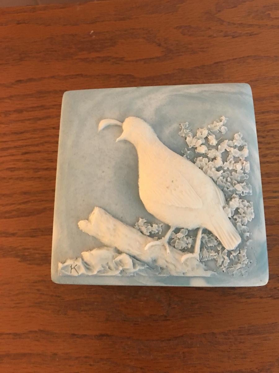 Vintage design Gifts International blue square soapstone trinket box with dove design. In good condition with no cracks or chips. This would be a great trinket box to place in your bedroom or bathroom. Measures 4”wide and 2”high.