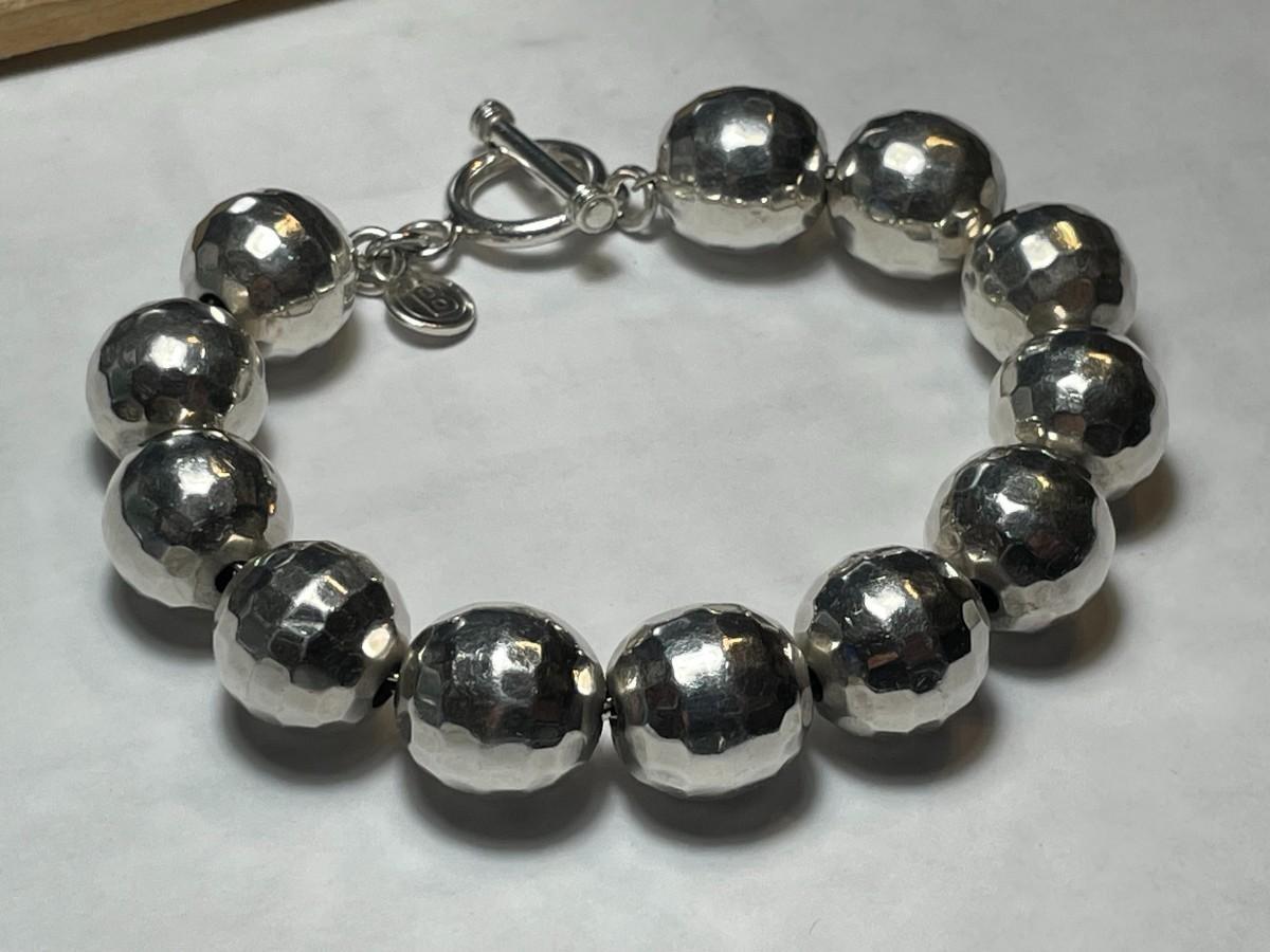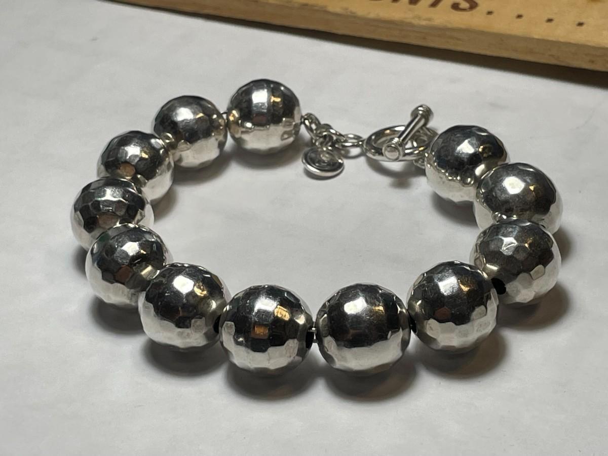 VINTAGE DESIGNER "B" MEXICO PREOWNED HEAVY 48.7 GRAMS STERLING SILVER 8.50" BALL BRACELET IN VERY GOOD PREOWNED CONDITION.