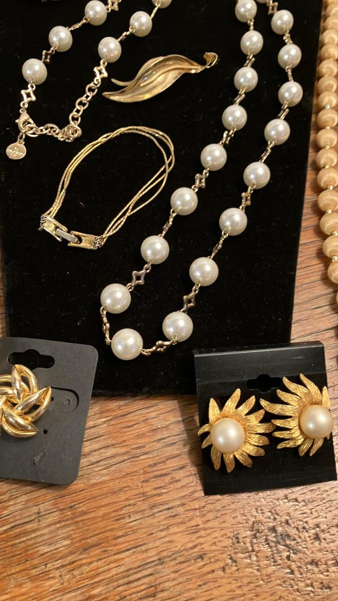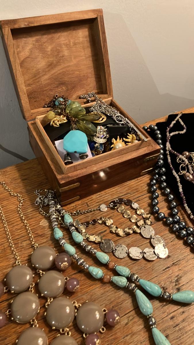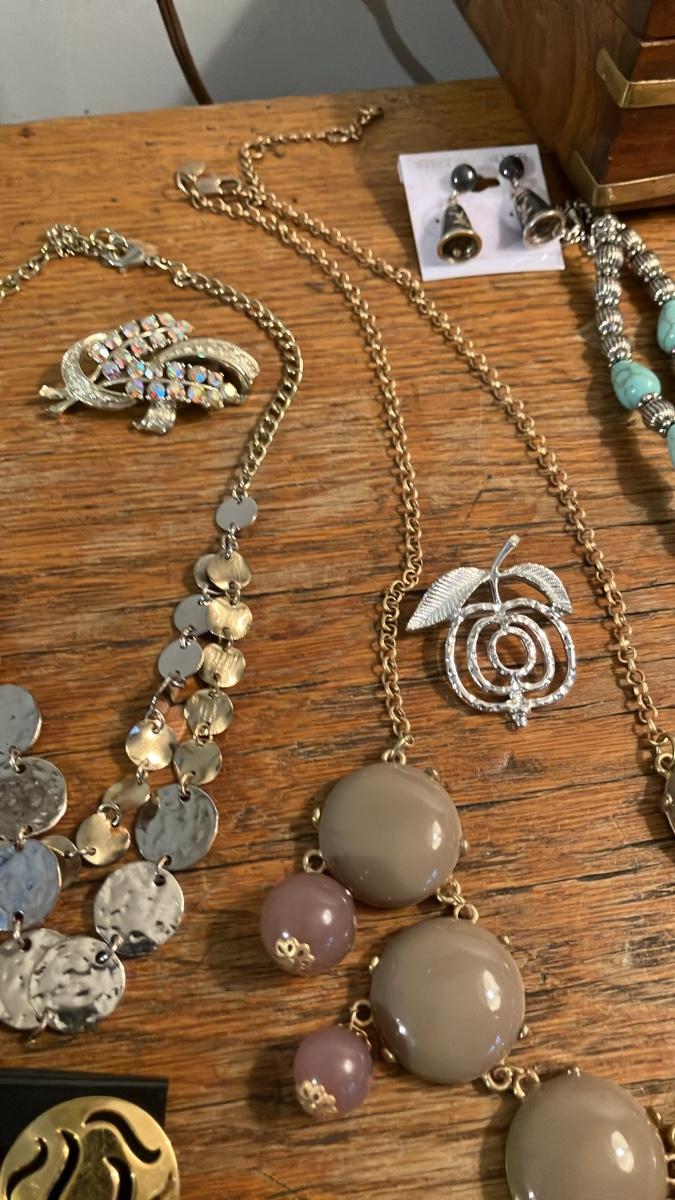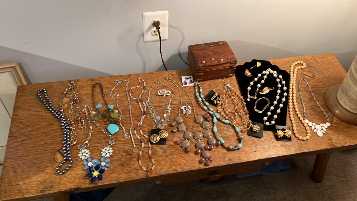 Vintage Designer Costume Jewelry Lot - 24 Beautiful Pieces + Brass Inlaid Wooden Jewelry Box!