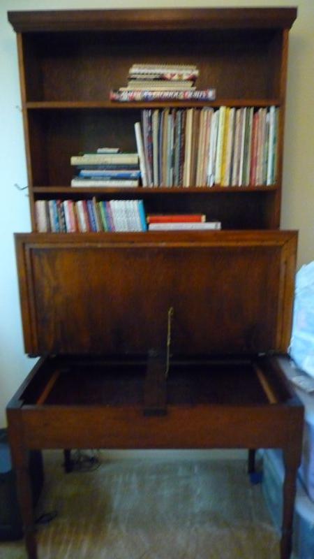 42x31x78.5. Great storage for any crafting or office supplies. Very nice looking piece of furniture.