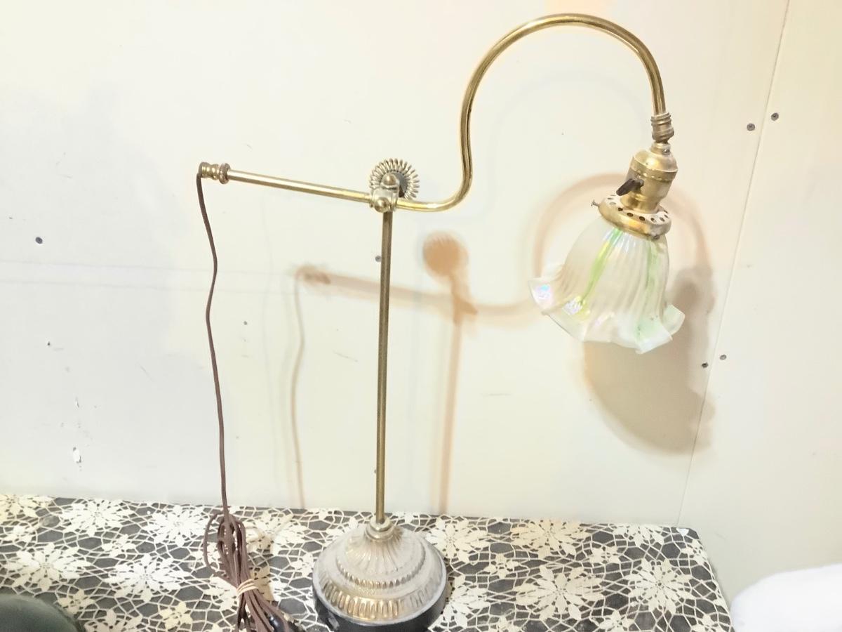 Vintage Desk Lamp With Iridescent Lamp Shade