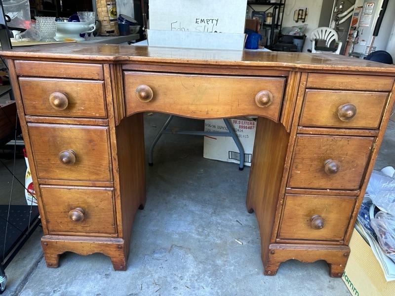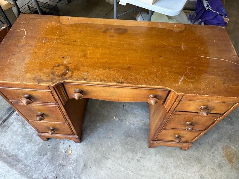 This is a great size desk. We believe it was a vanity, but the mirror has been lost. The desk is 40 inches long 24 inches deep and 20 inches tall.