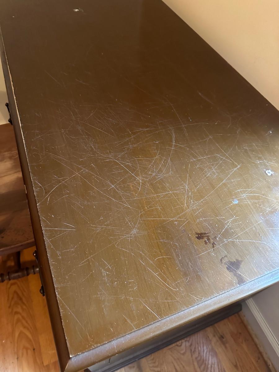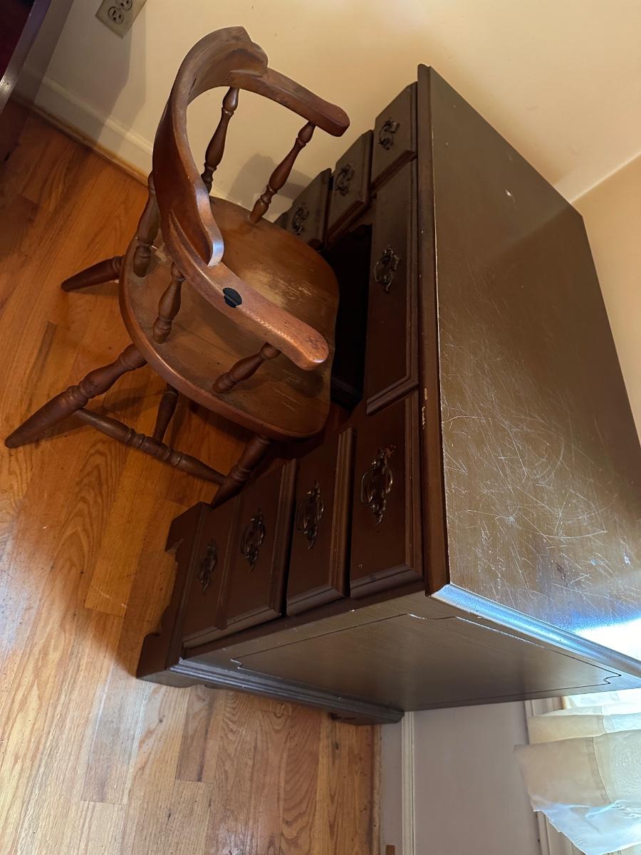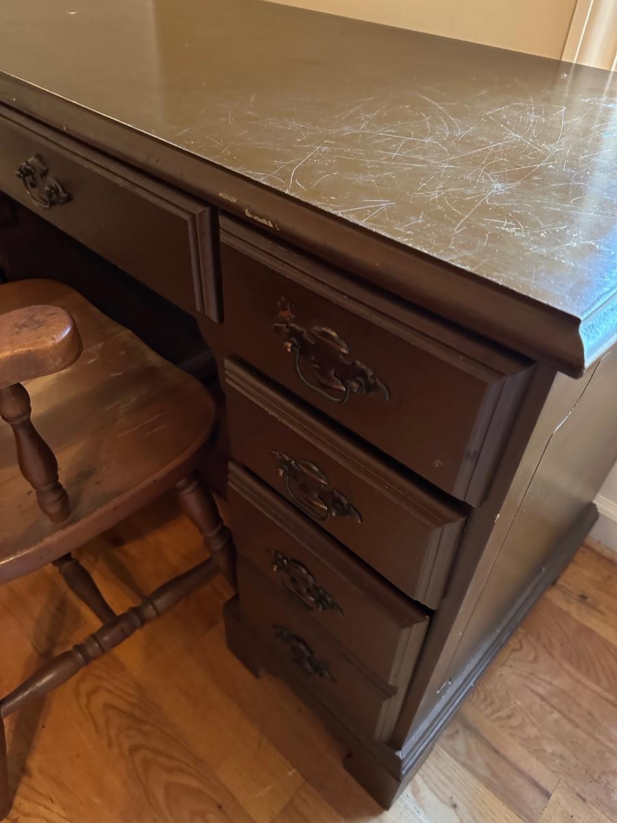 VINTAGE DESK WITH CHAIR, 43 1/2X22X30, LOTS OF SCRATCHES