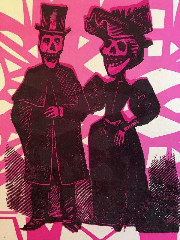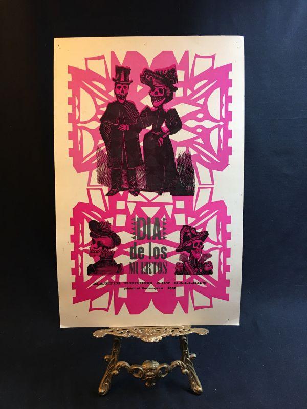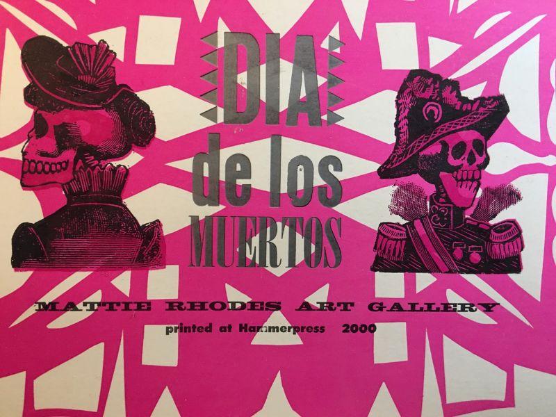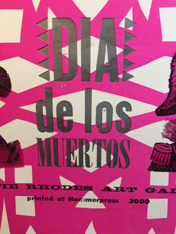 Vintage Dia de los Muertos silkscreened poster from Mattie Rhodes Art Gallery - original yet classic