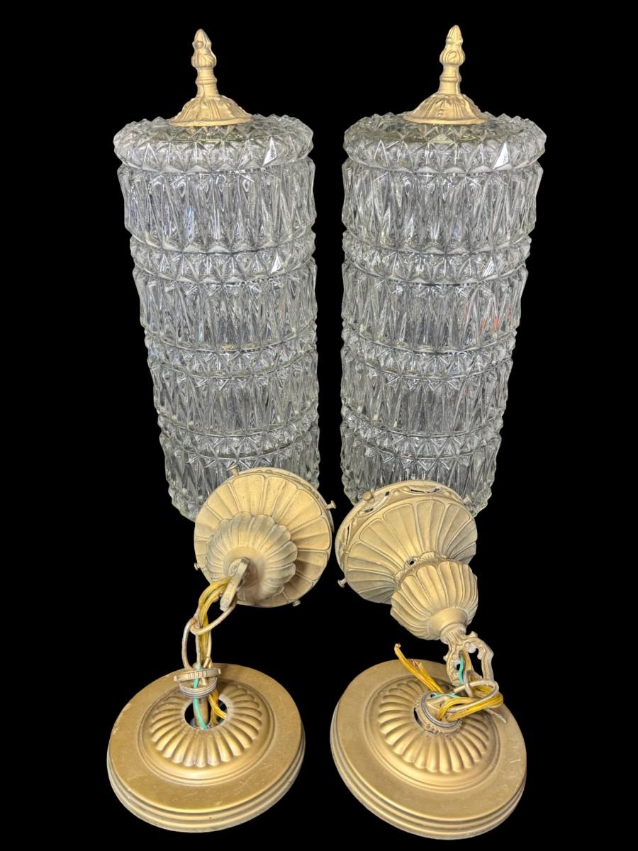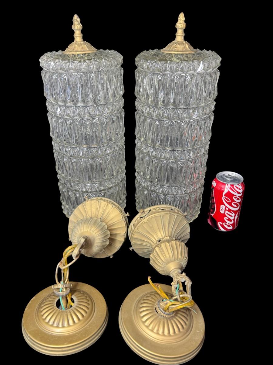 Vintage Diamond Cut Clear Glass Cylinder Pendant Lights