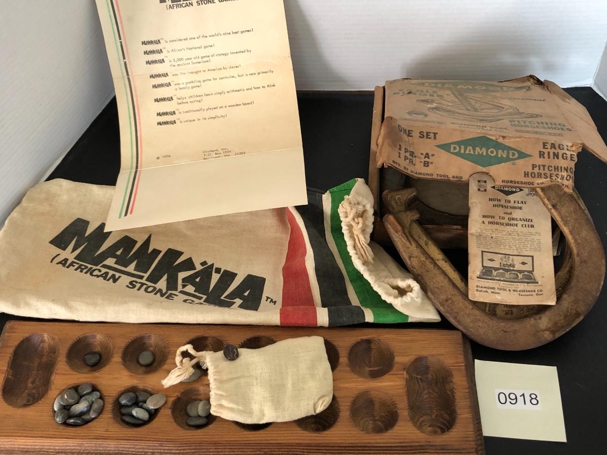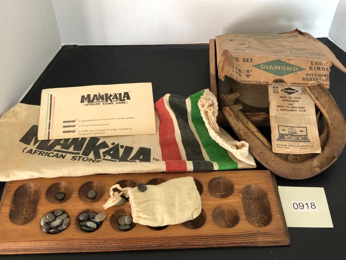 Vintage Diamond Horseshoes & Mankala Stone Game Lot #0918