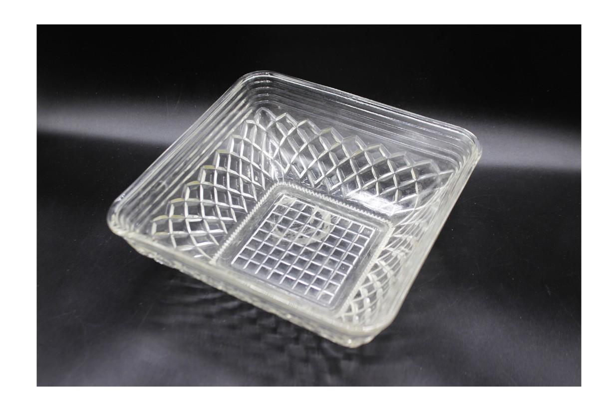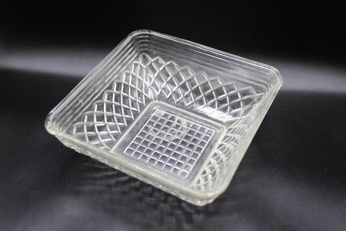 Vintage Diamond Square Pattern Crystal Glass Bowl Tray