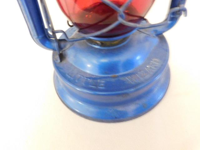 Vintage Dietz Little Wizard Oil Lantern with Red Globe 12"