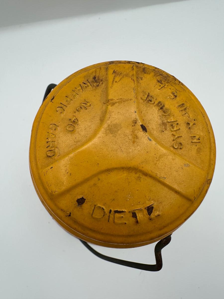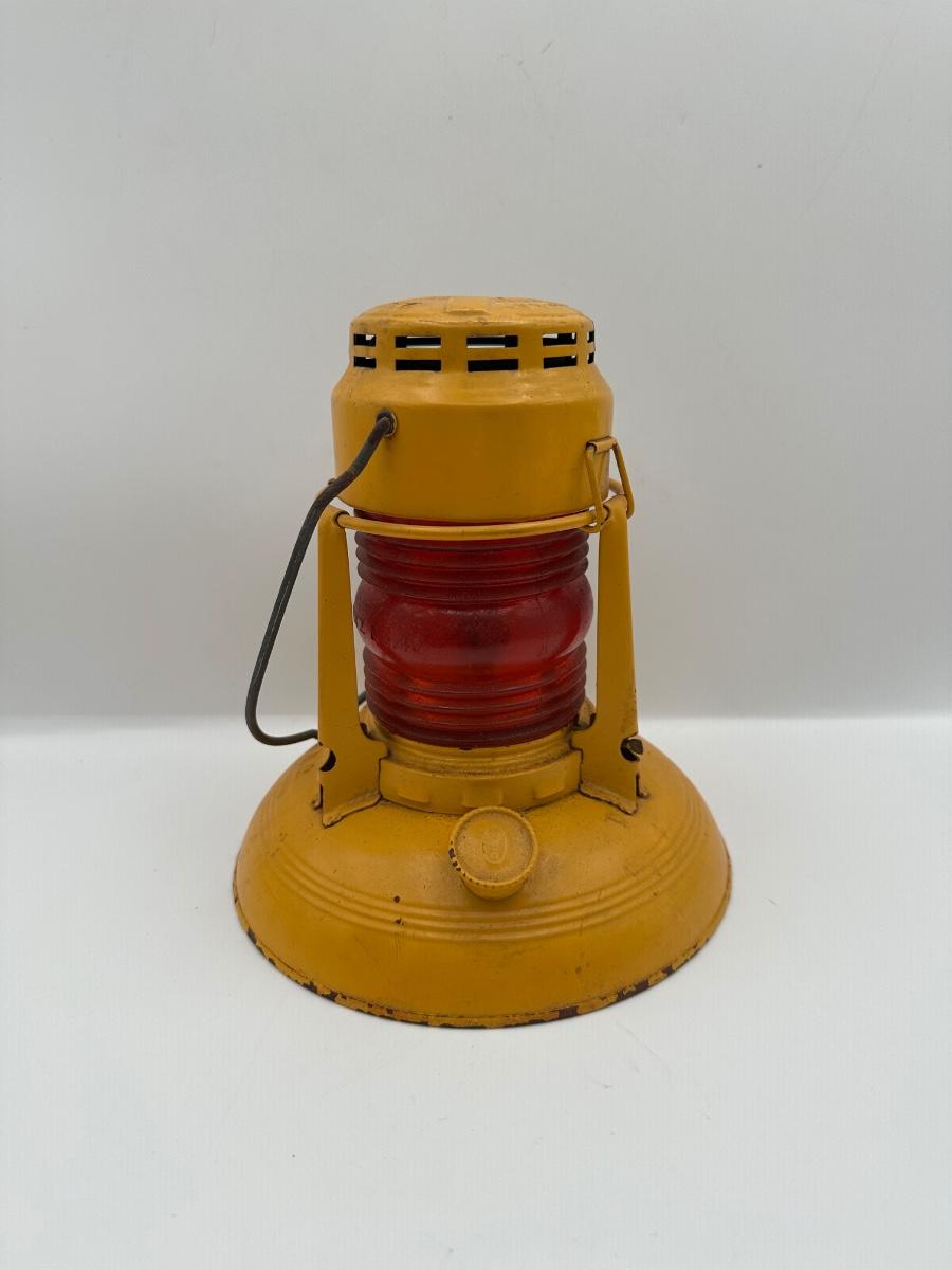 Vintage Dietz Nautical Caution No. 40 Lantern – Yellow with Red Glass Globe