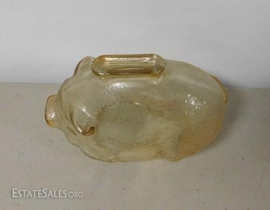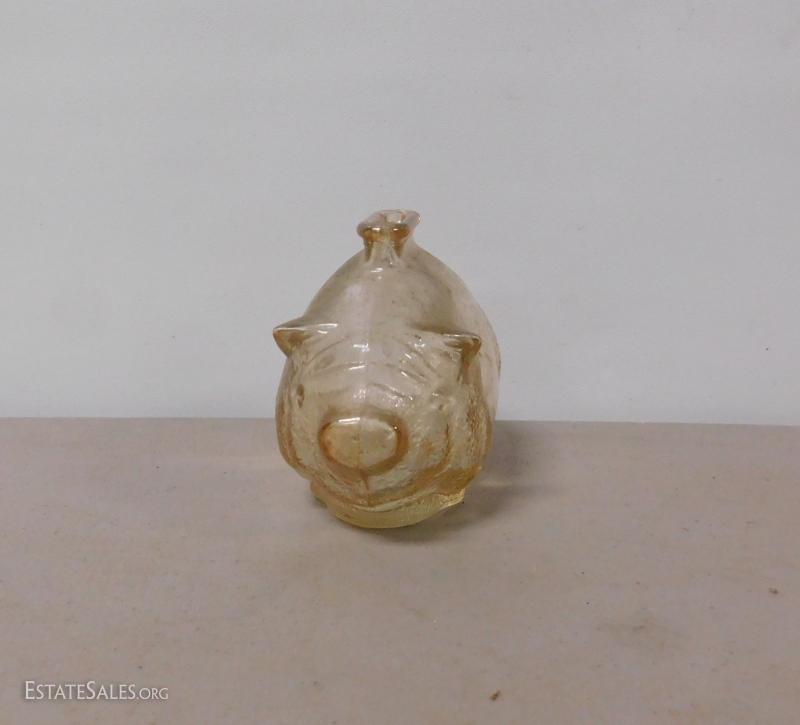 Vintage Diminutive Anchor Hocking Glass Piggy Bank. Needs cleaning. No visible issues with cracks or chips