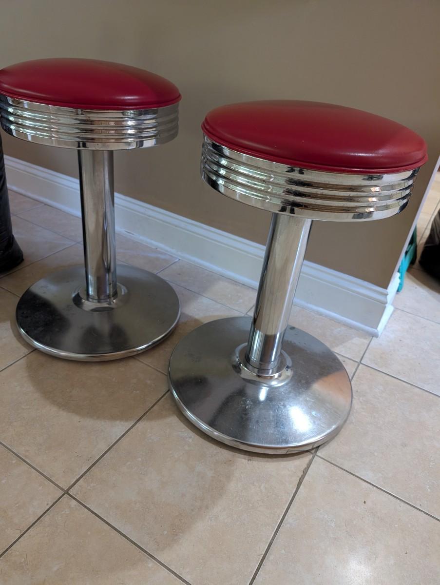 Set of 2 Vintage Red Cast Iron Base Barstools