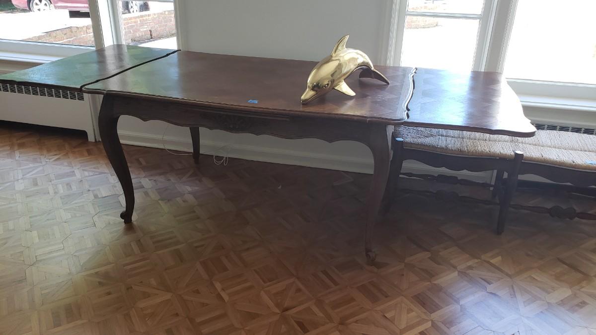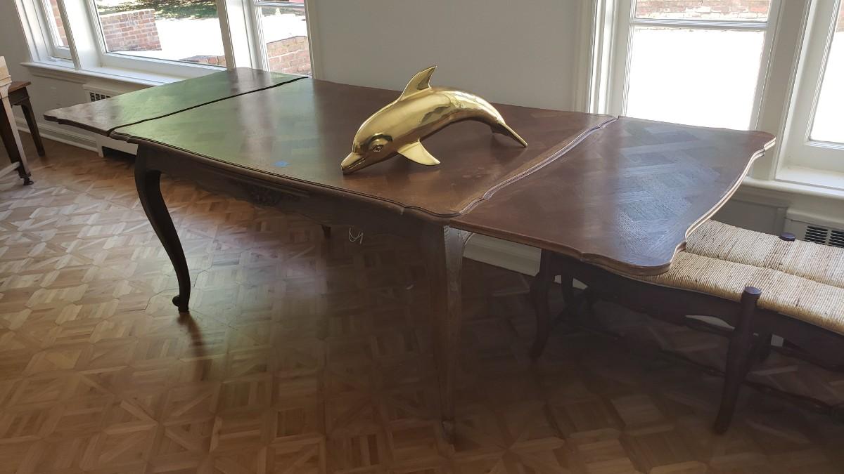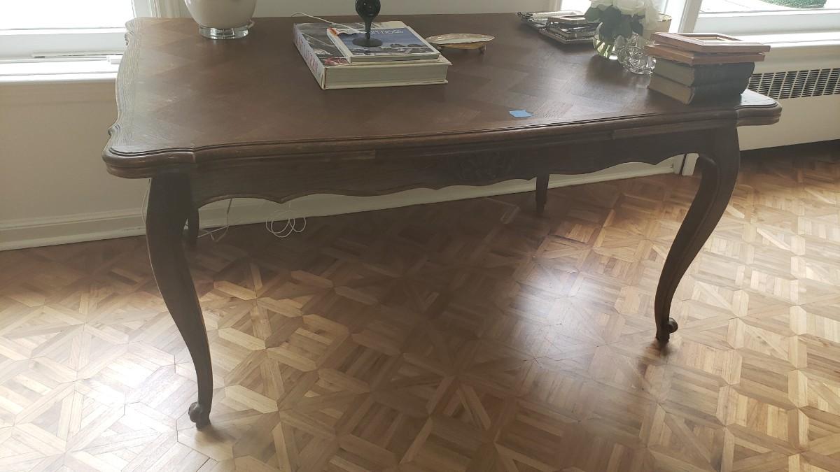 Vintage dining room table with built-in extendable leaves