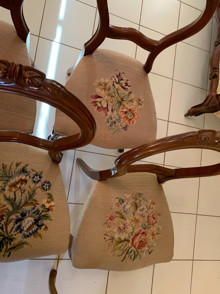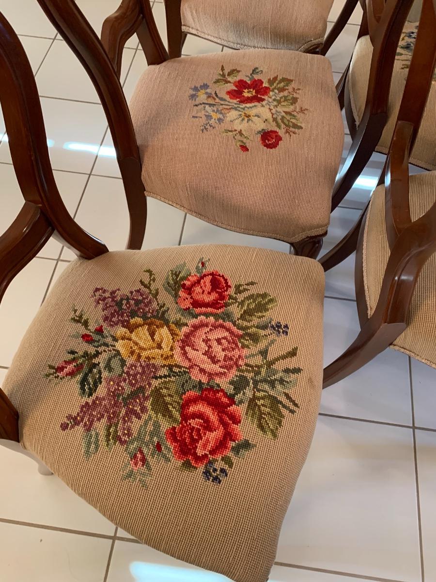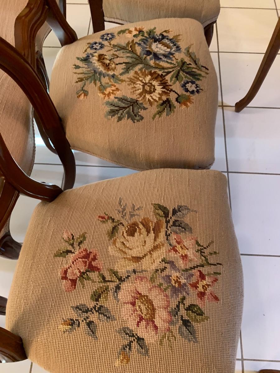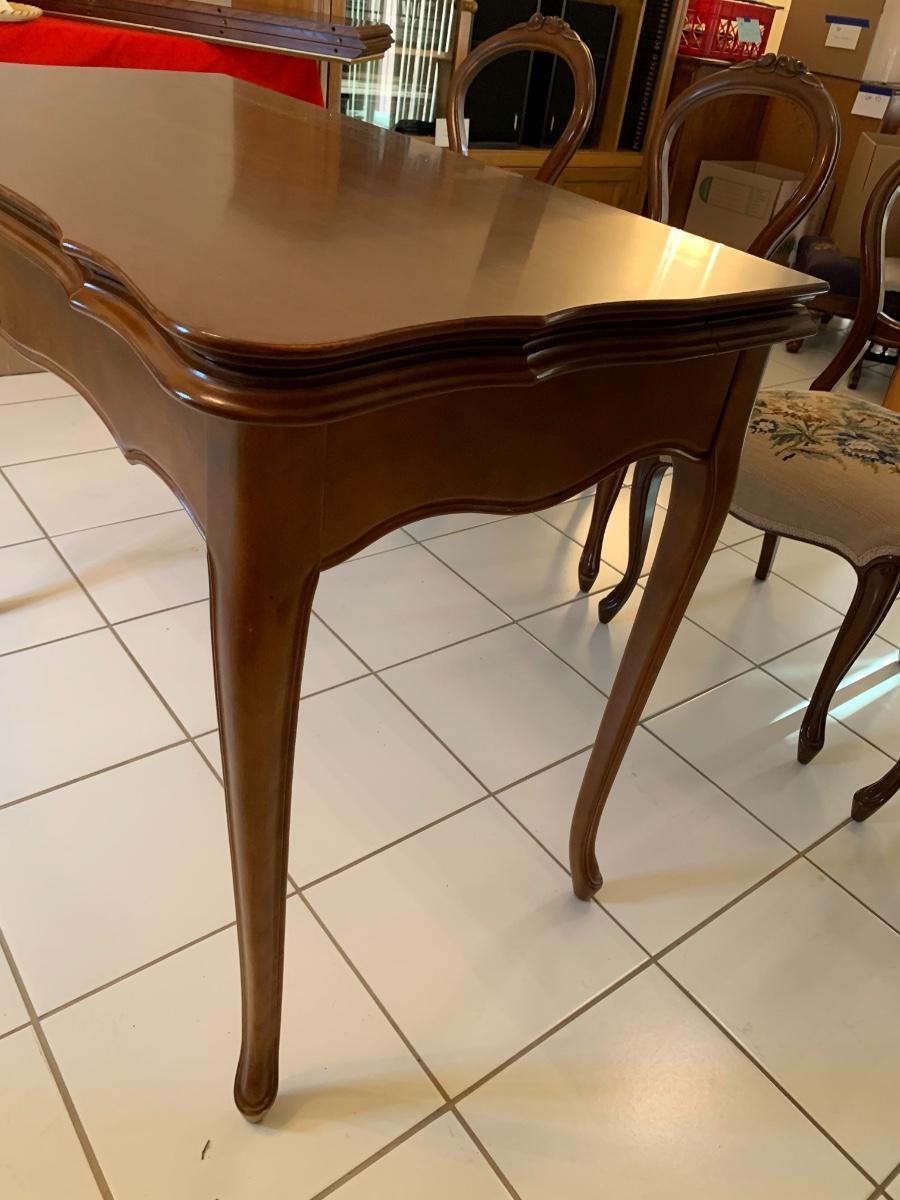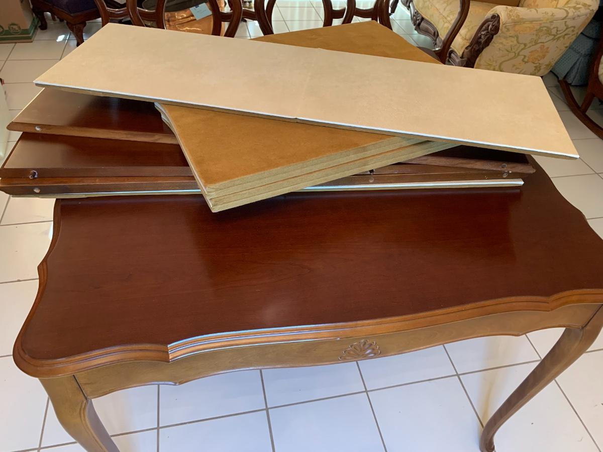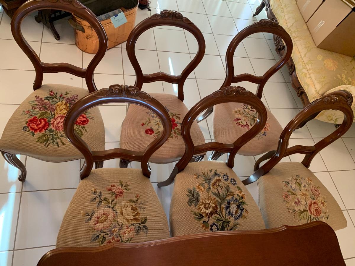 Vintage wood dining table with 6 chairs, 3 leaves and table top protector padding. Can be used in most compact size as a desk and then opened and expanded as far as you need to seat up to 6 people.
