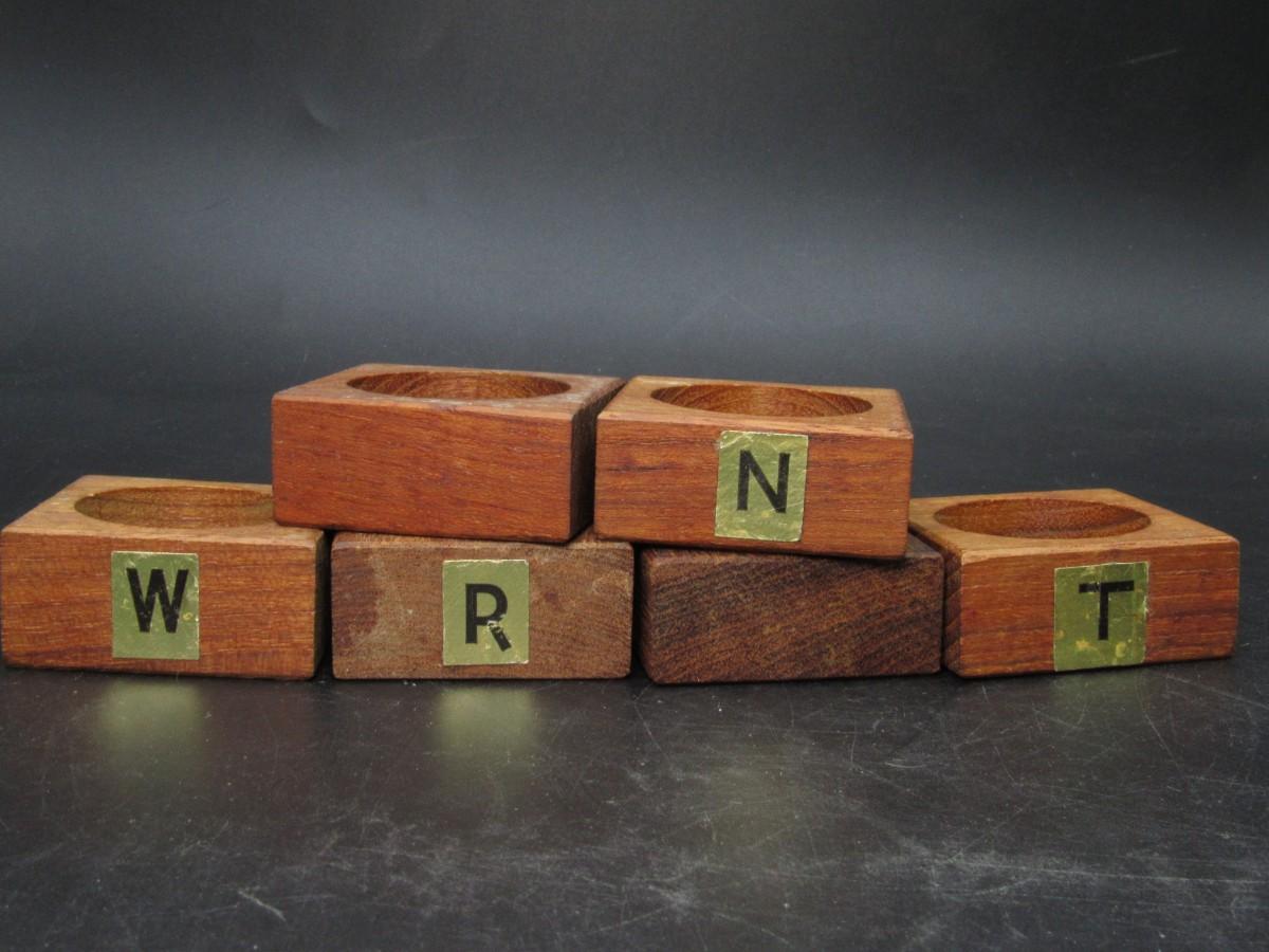 Vintage Dinnerware Wood Block Square Napkin Ring Holders