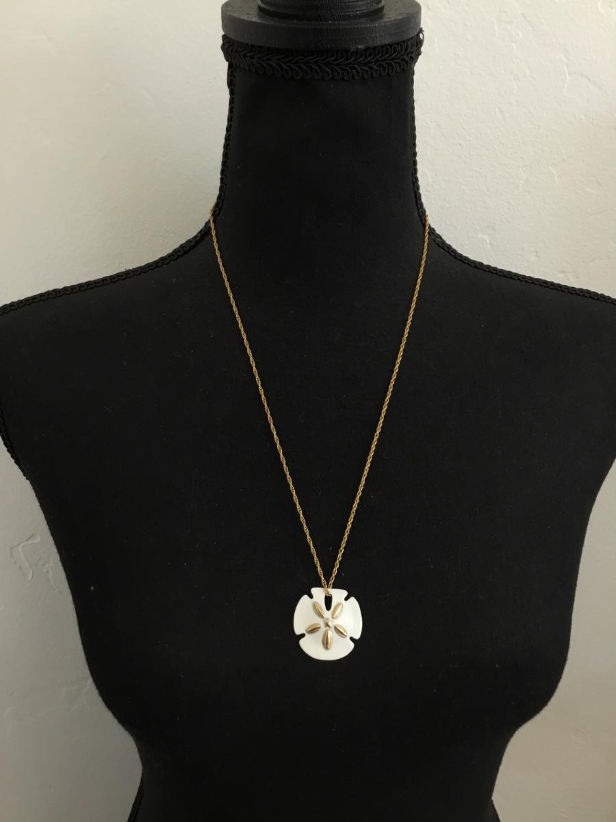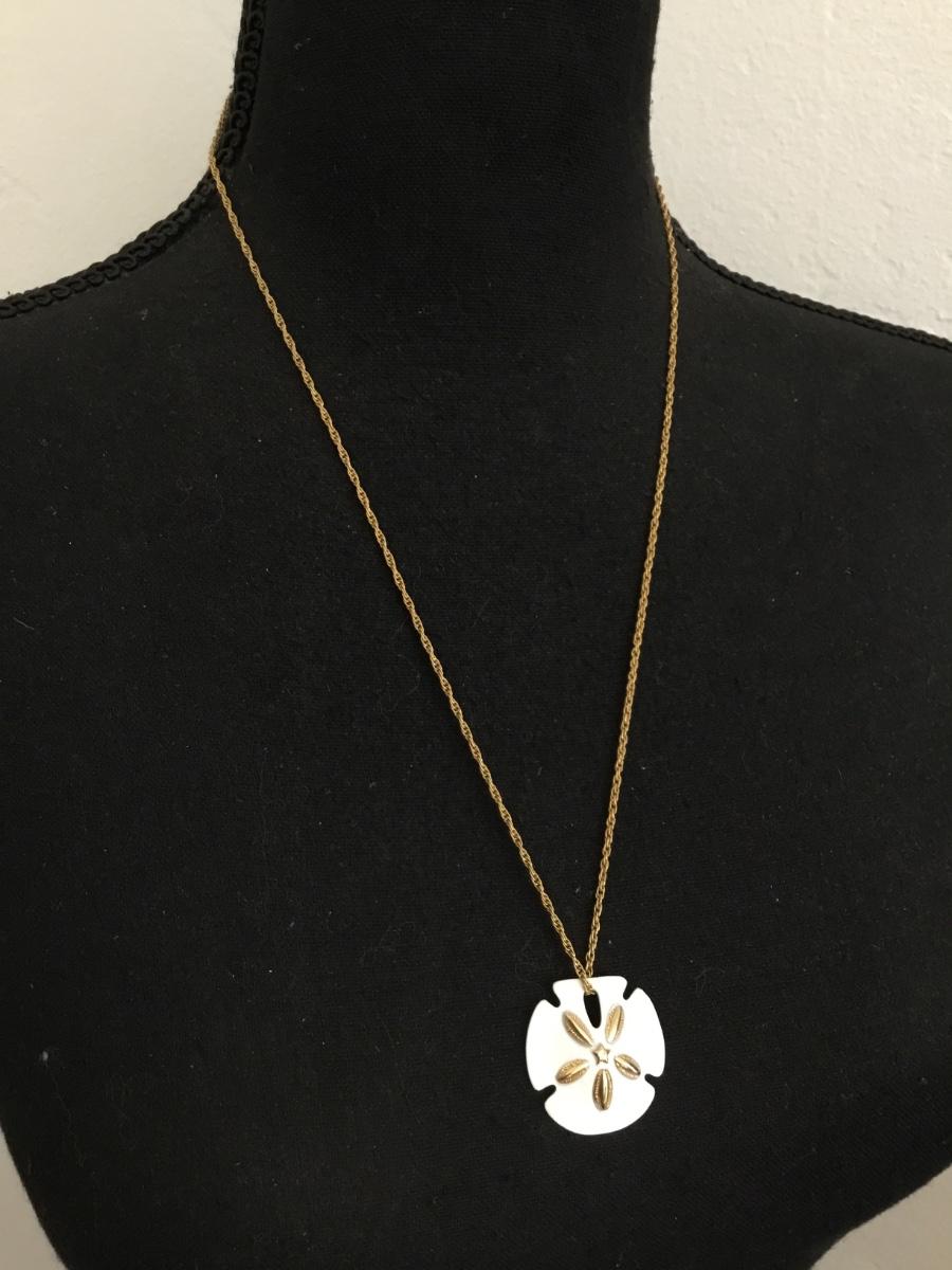 Vintage direction, one enamel, Sandollar pendant necklace, gold toned, mid-century