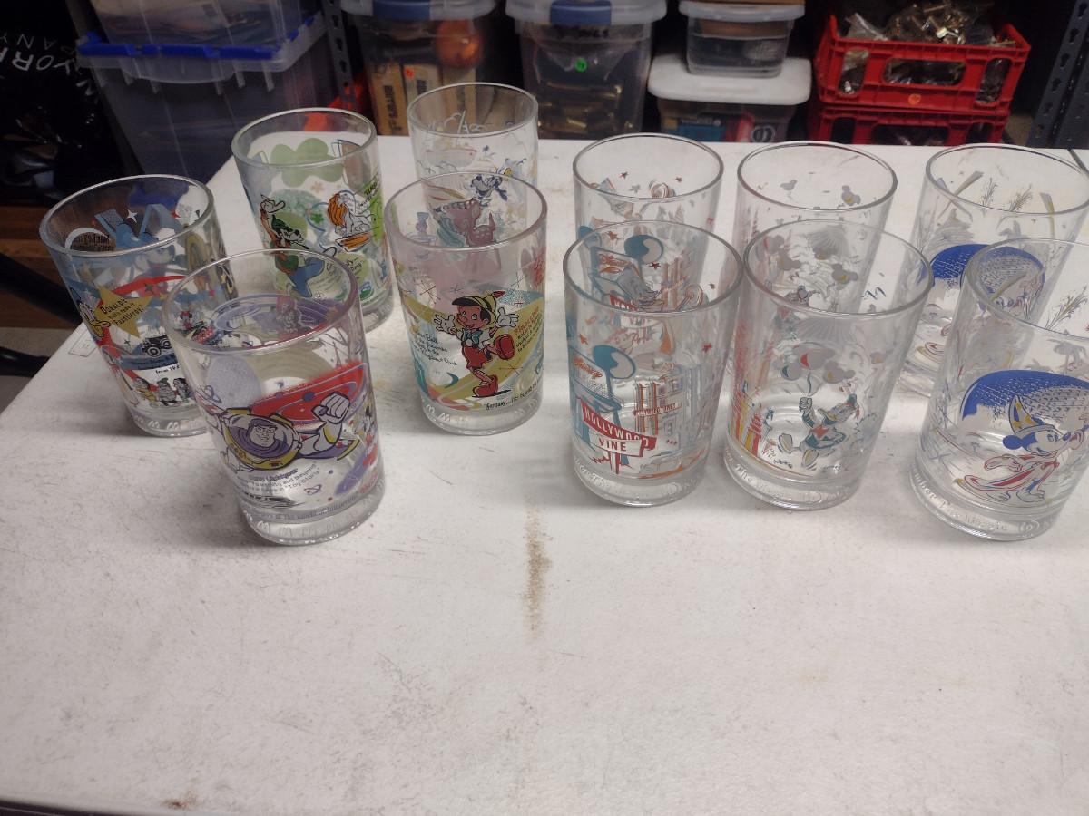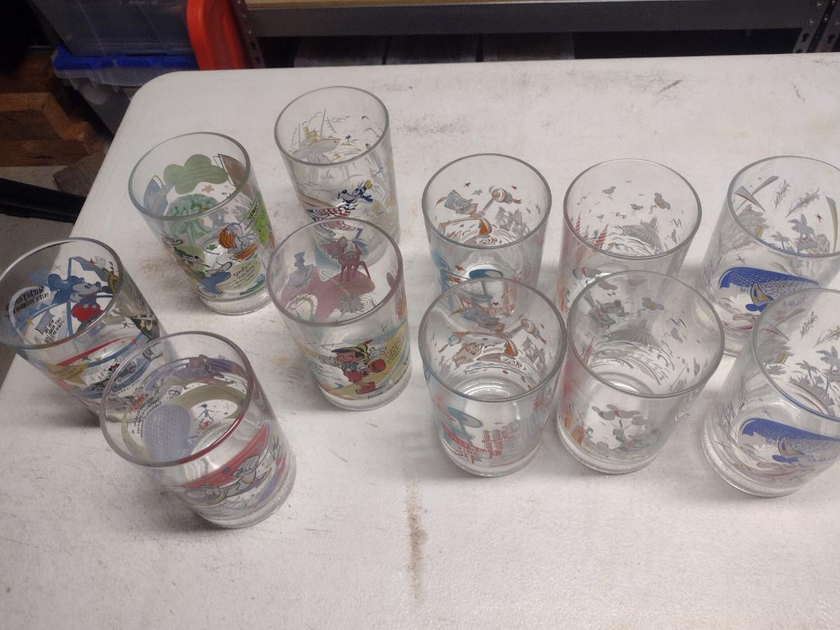 Vintage Disney Drinking Glasses- 11 Pcs.- Assorted Characters.