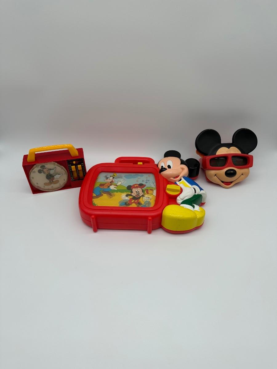 Vintage Disney Mickey Mouse Preschool Toy Lot – Radio Clock, View-Master & Activity Toy