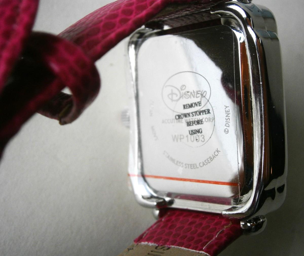 Vintage Disney Wristwatch by Accutime, 1 1/2 in x1 1/4 in. metal case with original simulated leather band, needs a battery.