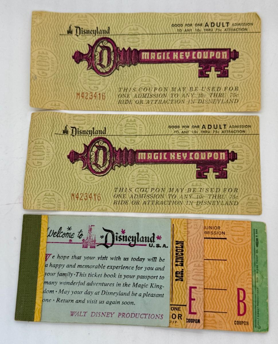 Vintage Disneyland Arreactions Ticket Book & (2) Magic Kingdom Key Coupon partially used leftover