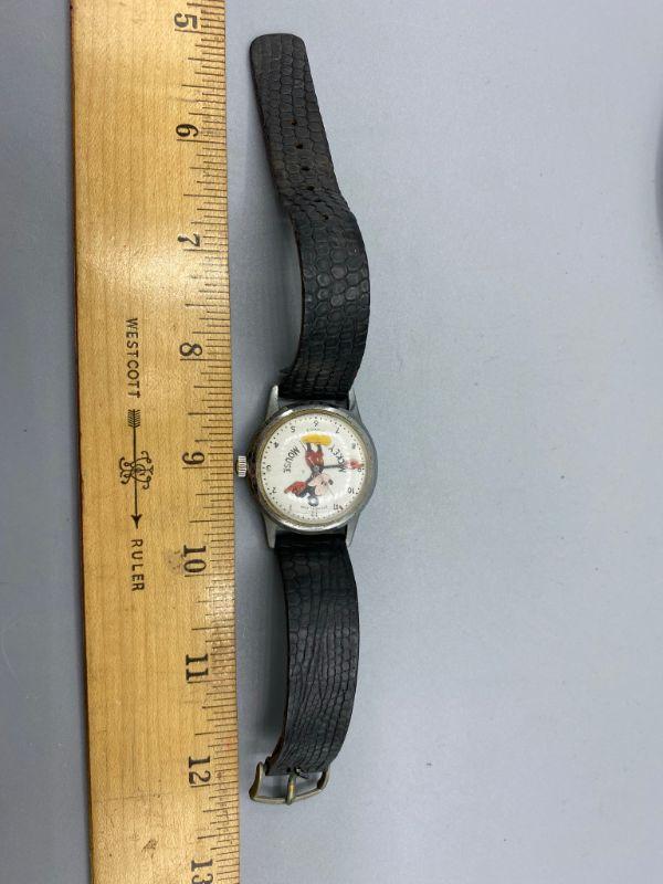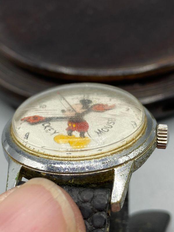Vintage Mickey Mouse watch. Watch face says Disneyland across the top. Currently not running. Band is stiff and coming apart, watch face is scratched. For parts or repair. Does have a clear back so you can see the gears moving when working.