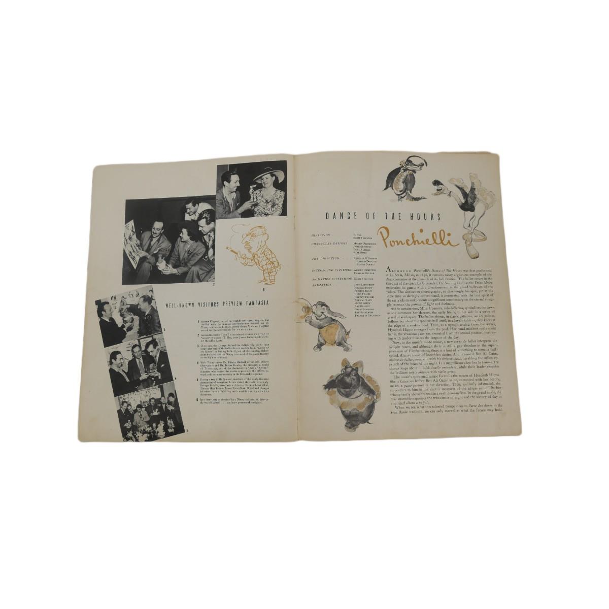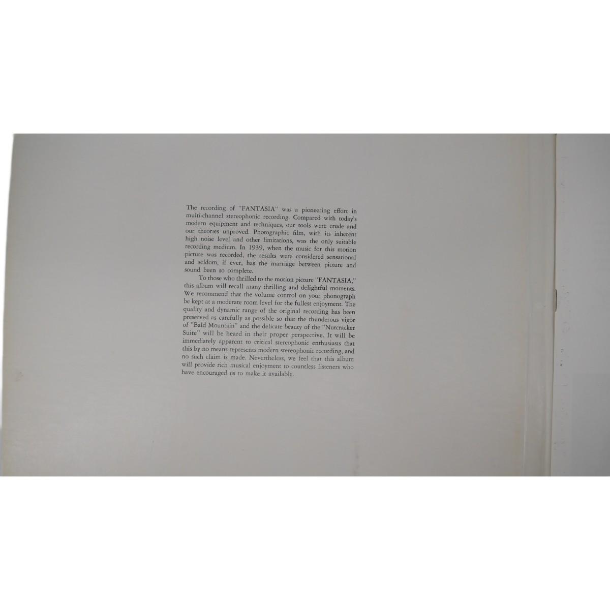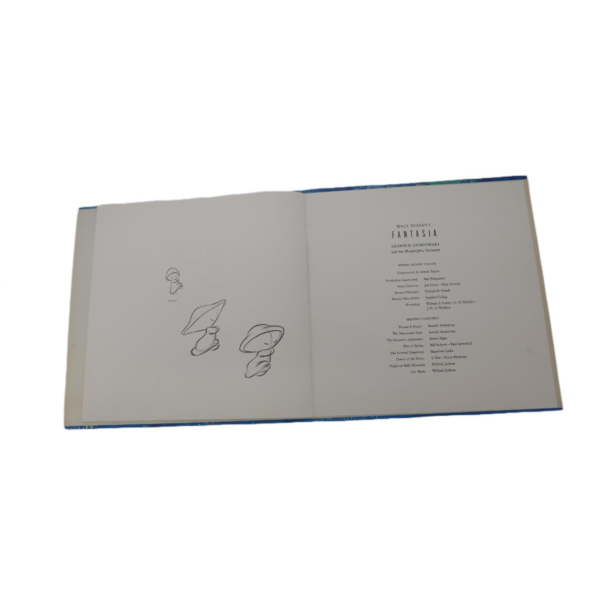 Vintage 1957 Walt Disney's "Fantasia" three piece vinyl record set with illustrated progrma book inside. Music by Leopold Stokowski with the Philadelphia Orchestra. In excellent condition! Sleeves are originally blank and one has been replaced as it was missing. Corners have some wear, but overall great condition for its age. Album measures 12.5" x 12.5". Included is a 1940 "Fantasia" book with information and illustrations of the movie and music. It is in fair condition, but still intact. Book measures 9.5" x 12.5". Lot weighs 3 lbs. (M42)