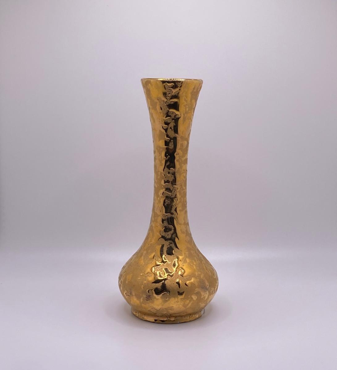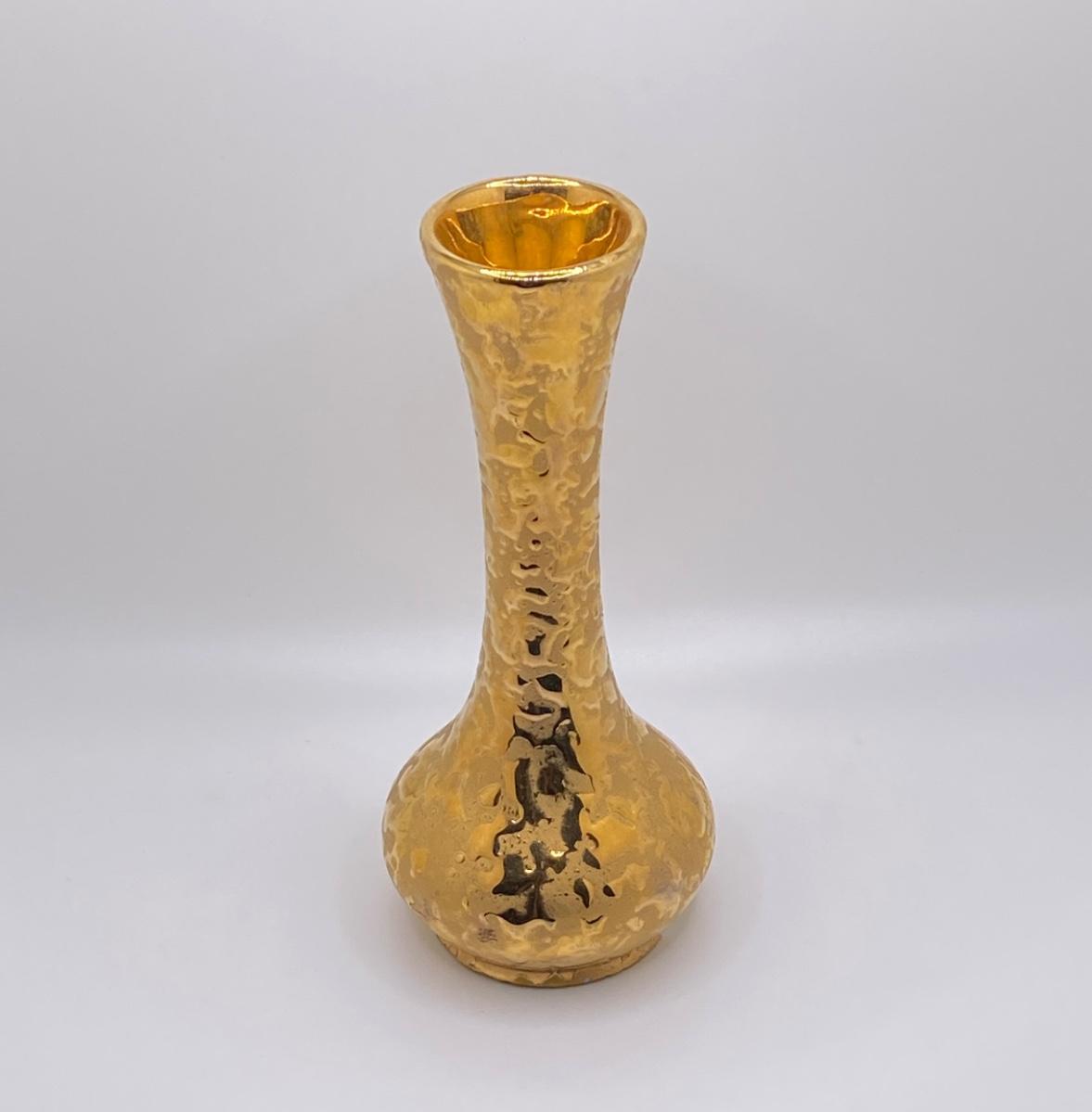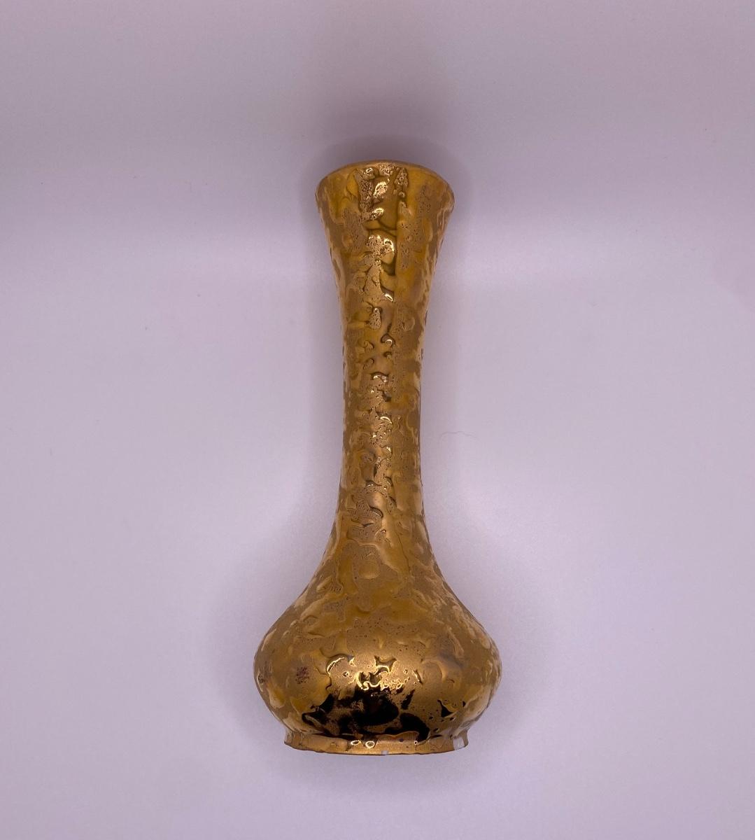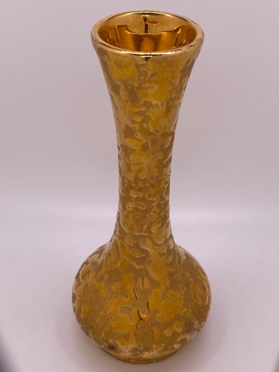 Vintage Dixon Art Studios Weeping Gold; 22kt Gold-Dipped/Painted Bud Vase 6.25”T