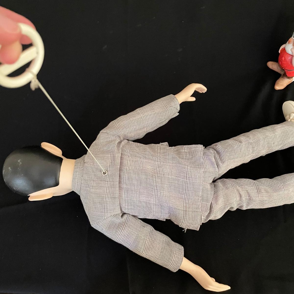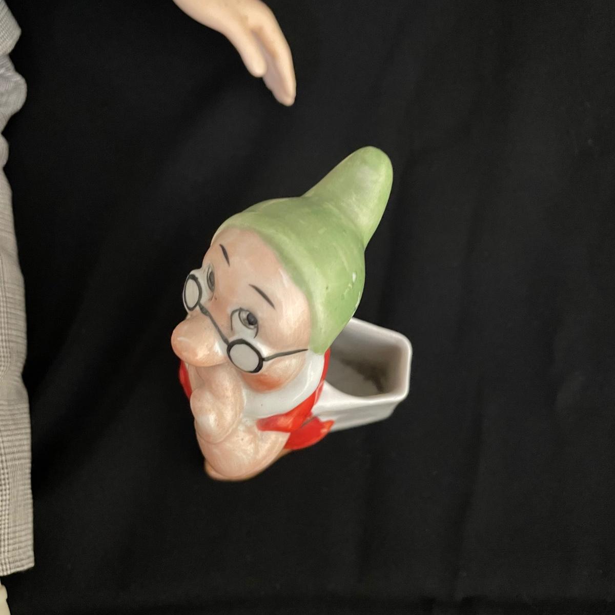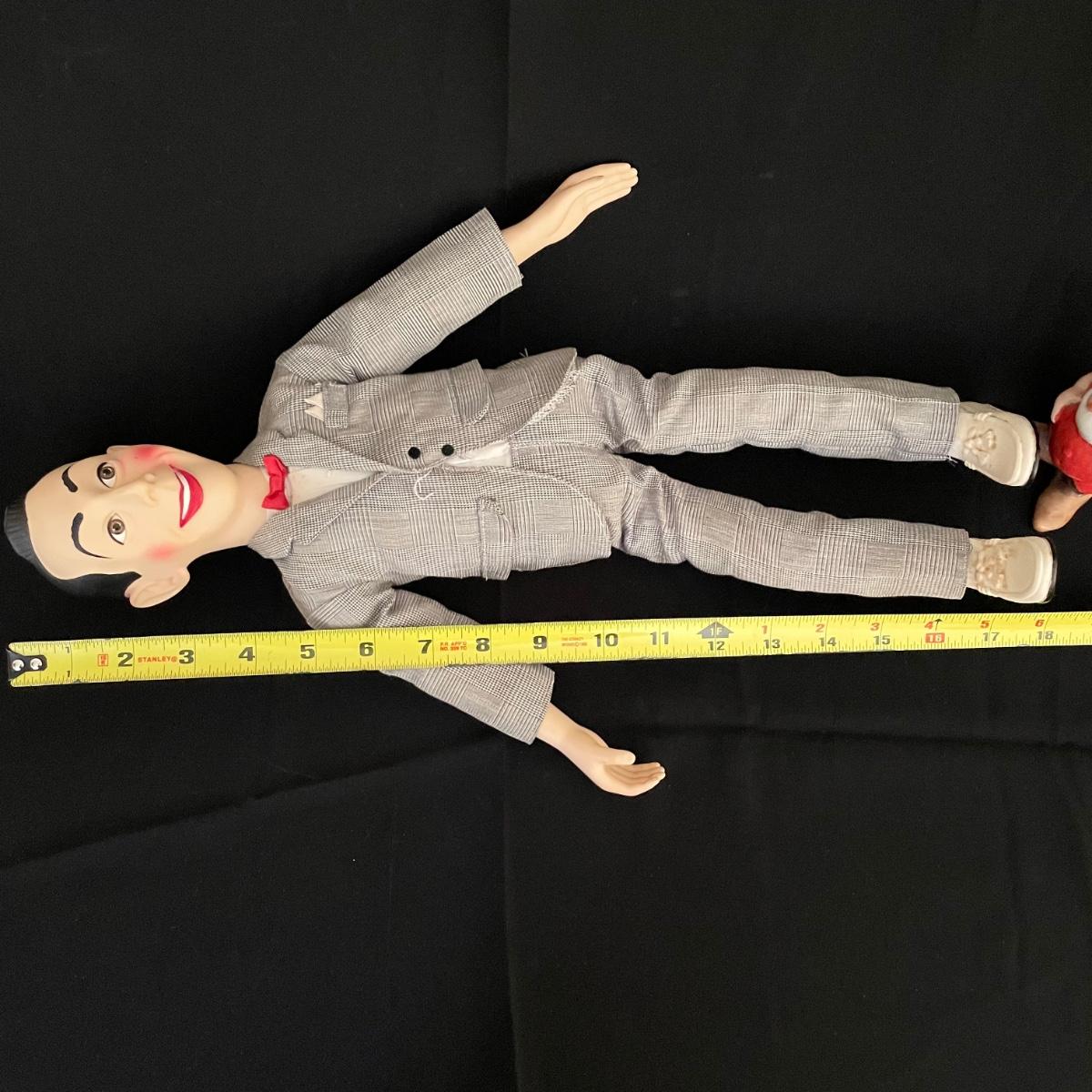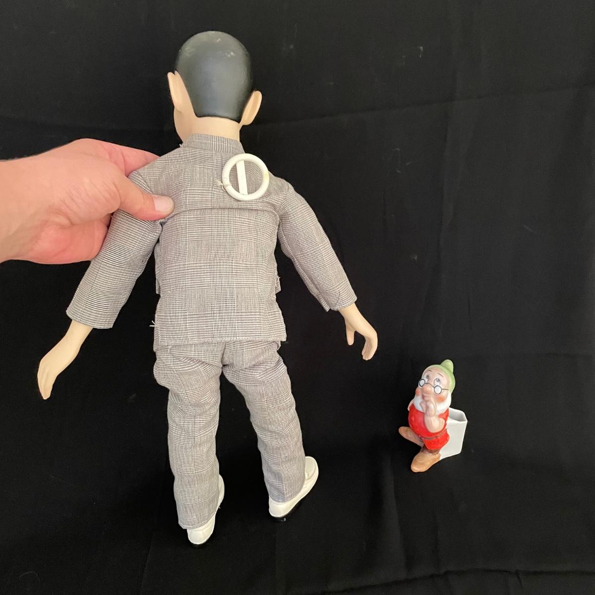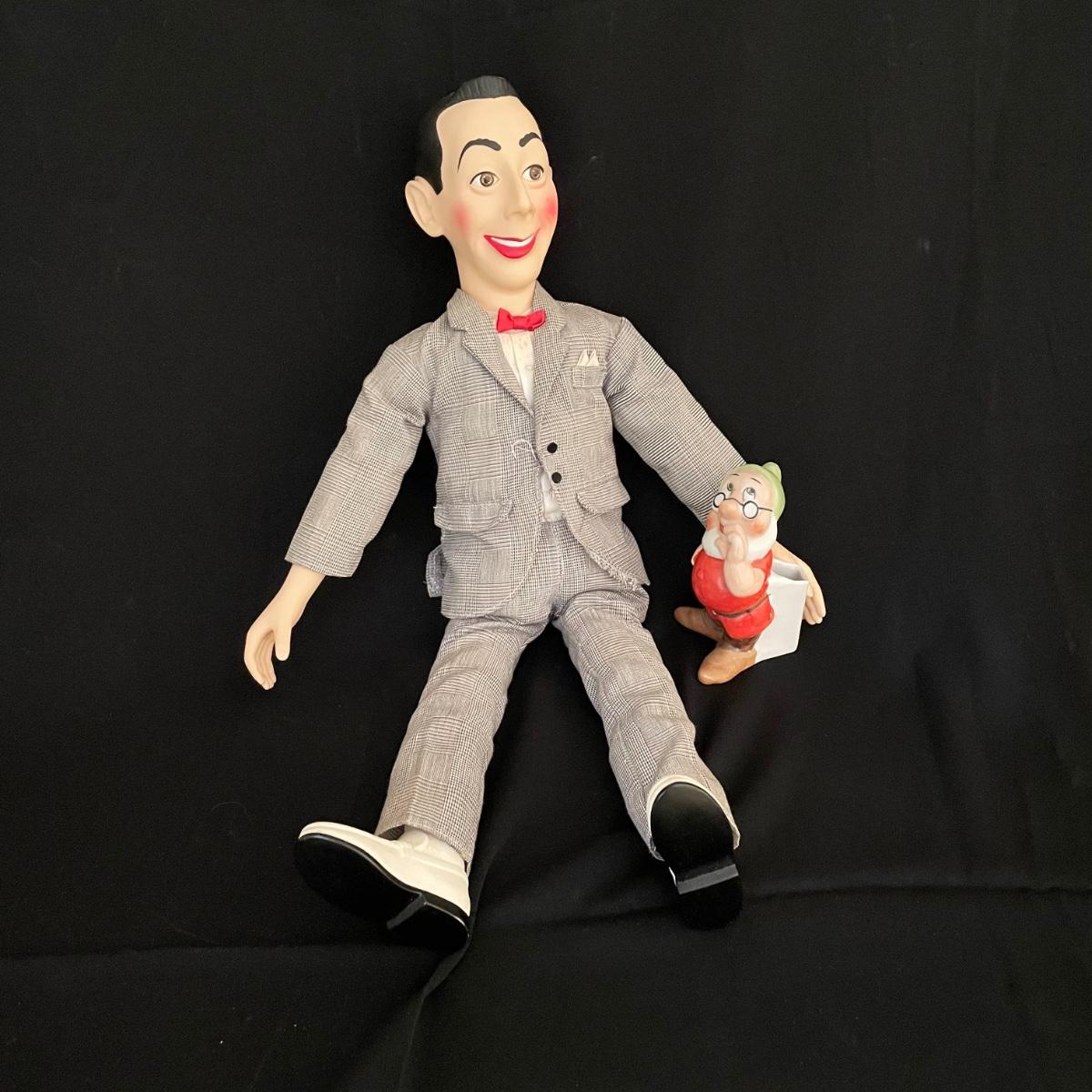 Vintage PeeWee Herman doll with talking draw string. He has a few different speeches, all stated at about 3x faster than normal speed. Lot also includes a character from Snowhite, Doc. He appears to be either a bud vase or a hat pin vase. See images. Shipping available.