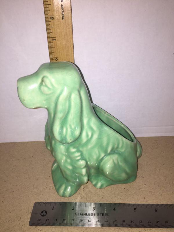Vintage green ceramic dog planter. Measures 6"t x 5"w, good condition.