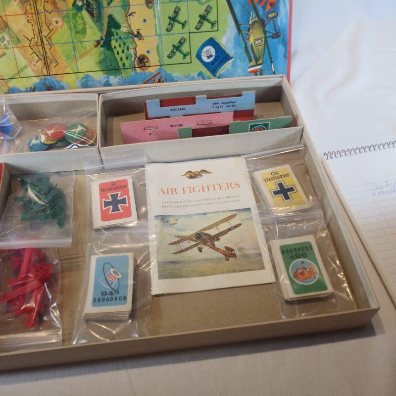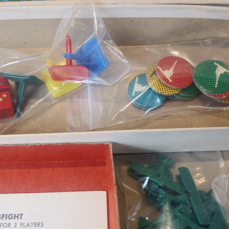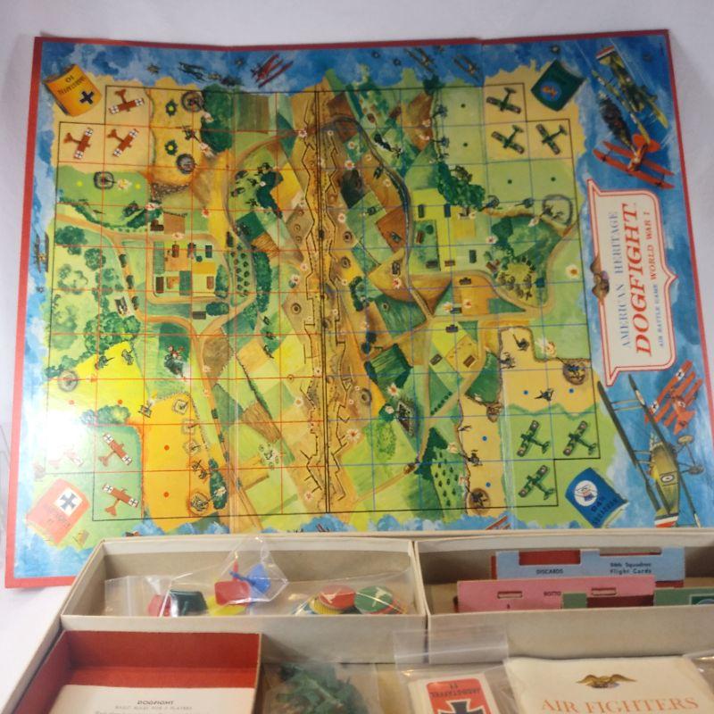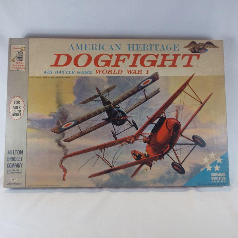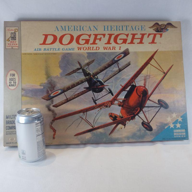 This is American Heritage "Dogfight" - Air Battle Game World War I by Milton Bradley, 1963 #4302. Seems to be complete and in very good condition. It's a large game box - 13 1/2-inches wide X 20-inches long. This could be more expensive to ship than expected so keep that in mind. Reserve/Starting Bid is $15.