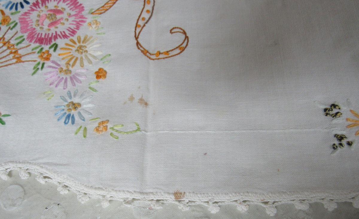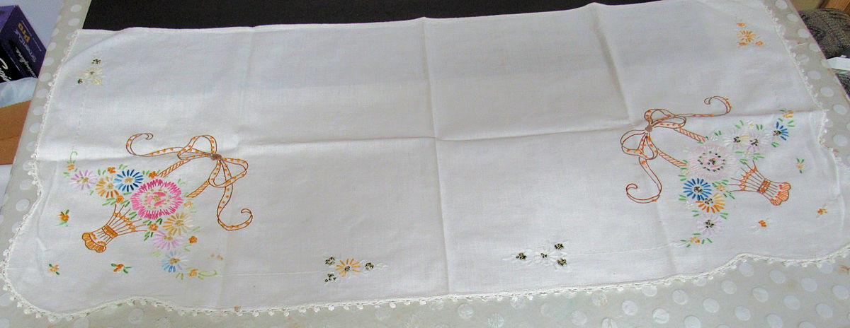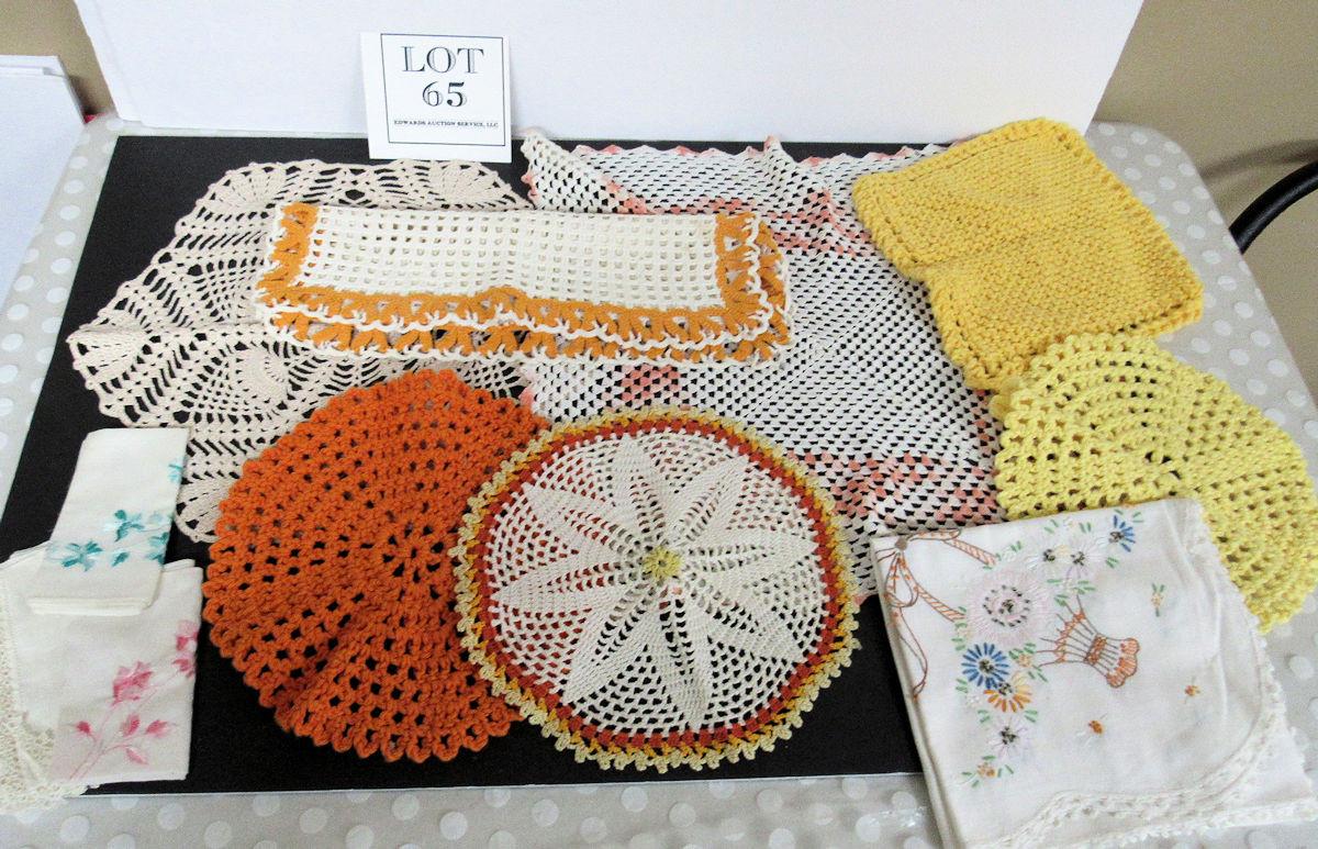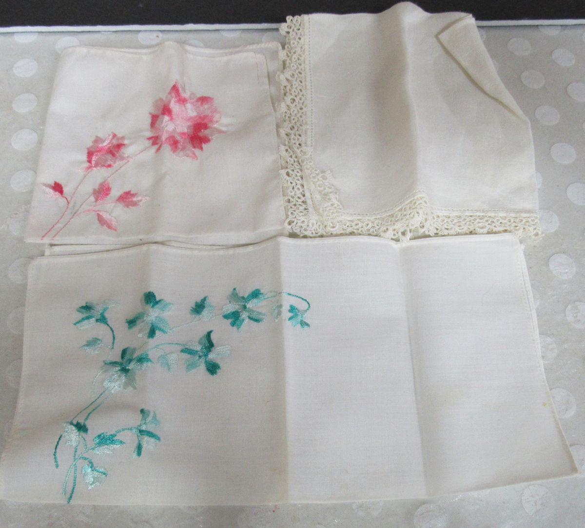 Dresser scarf has spots, others look good, 1 hankie has spots. Shipping is available at shipping cost plus $5.00 handling fee on up to 8 lots, $10.00 handling fee on 9 or more lots.