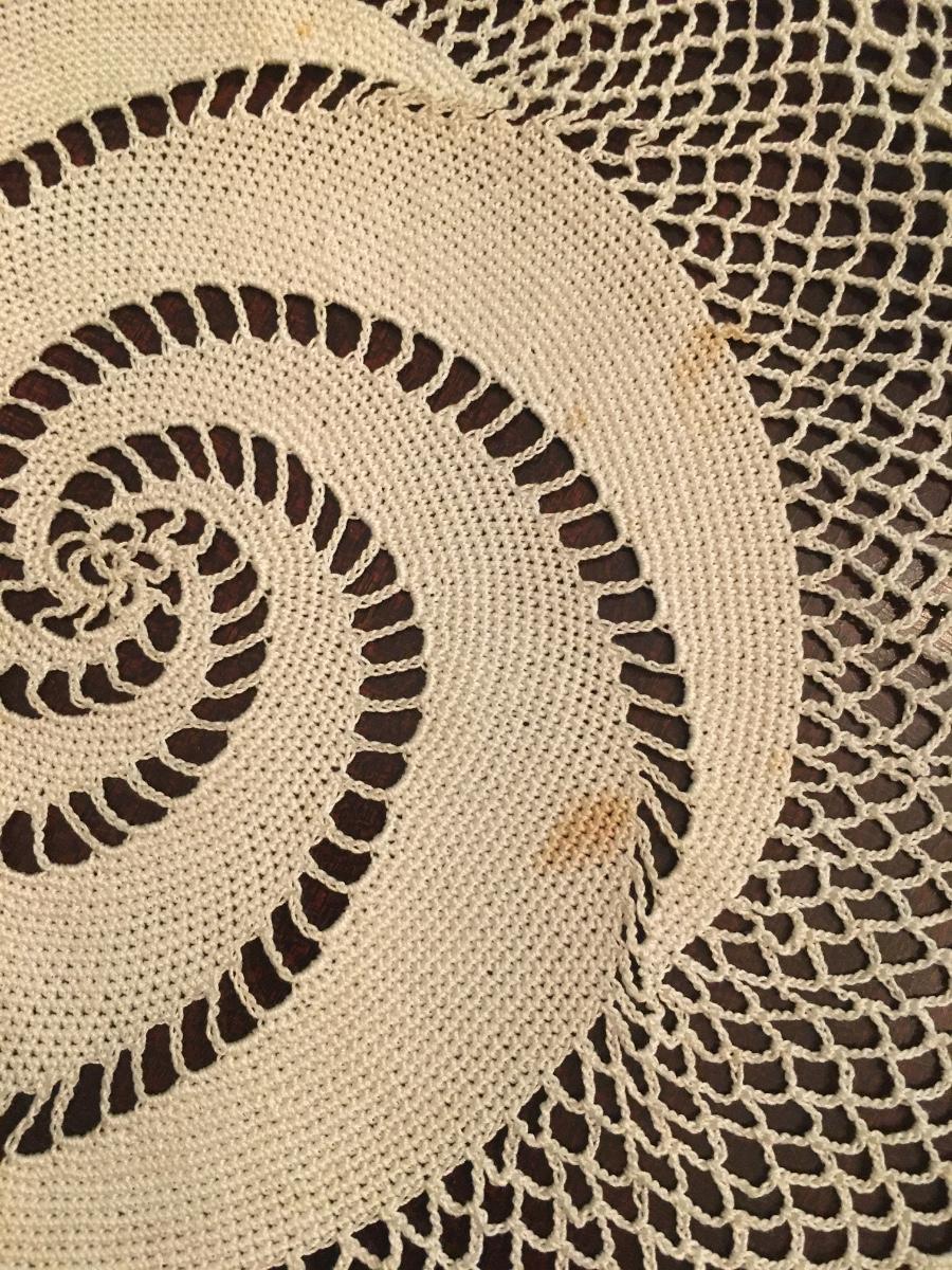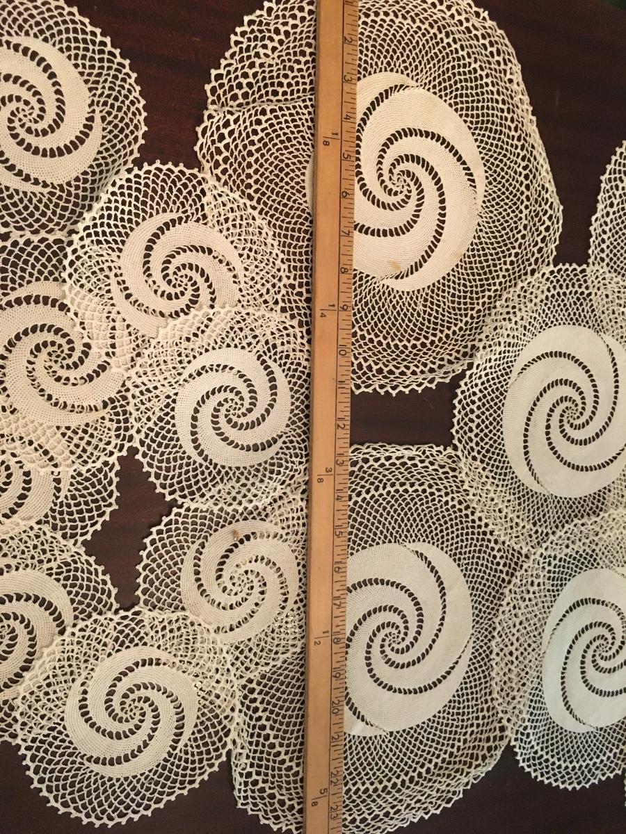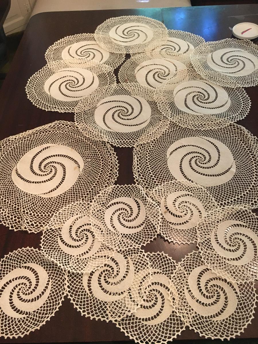 Lovely collection of 2 large, and 8 each medium and smaller coaster size. Most in excellent condition, a few with small stains. Amazing spiral pattern!
