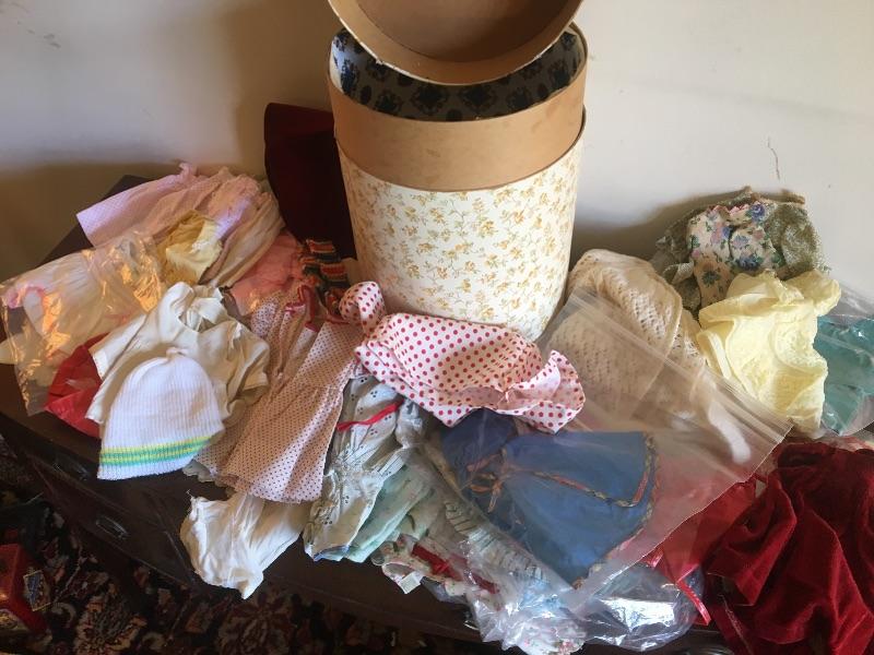 Vintage Doll Clothes and Accessories Lot with Box