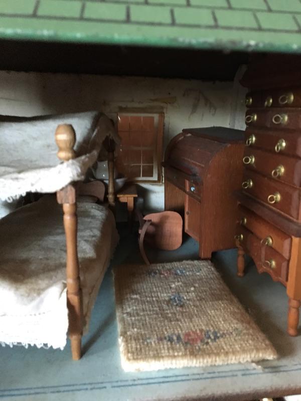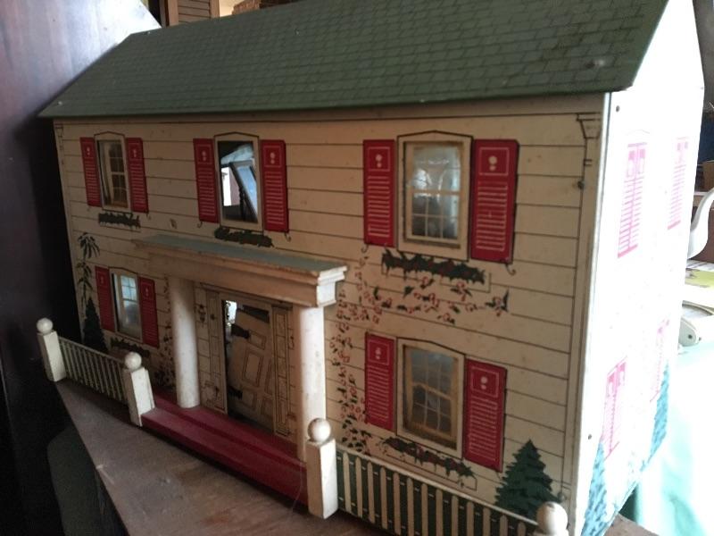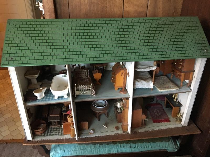 Vintage Doll House Fully Furnished with Doll Furniture and Accessories 27 x 13 x 21”h