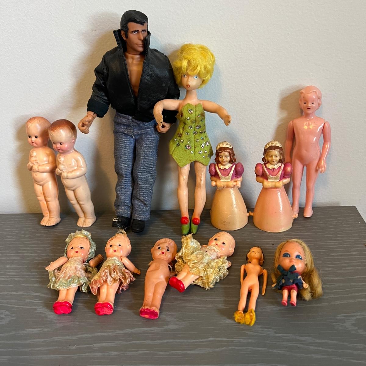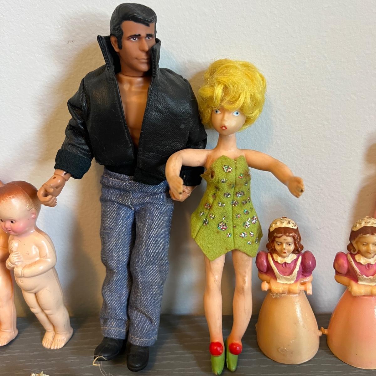 Antique & Vintage Toy Doll Figurine Lot - Celluloid, Carnival Kewpie, Fonz, Liddle Kiddle