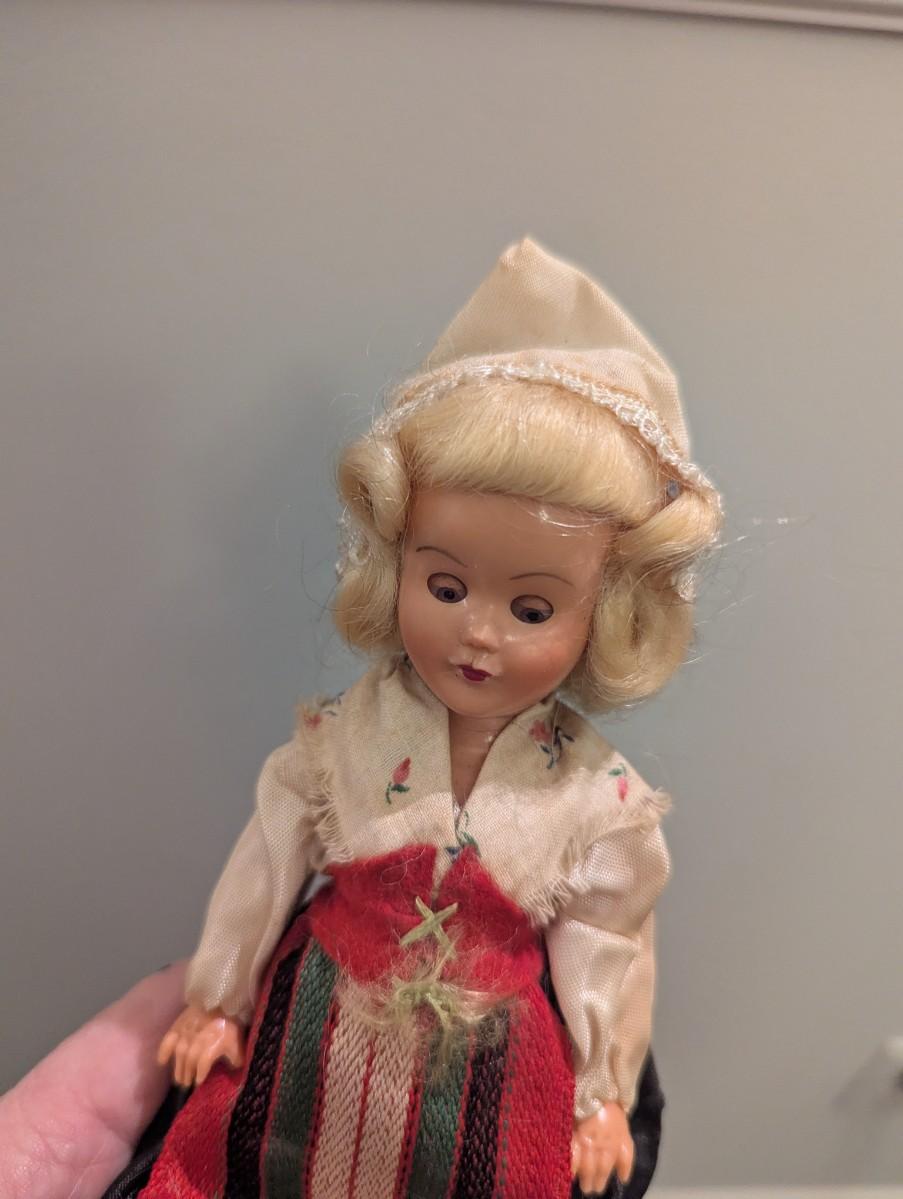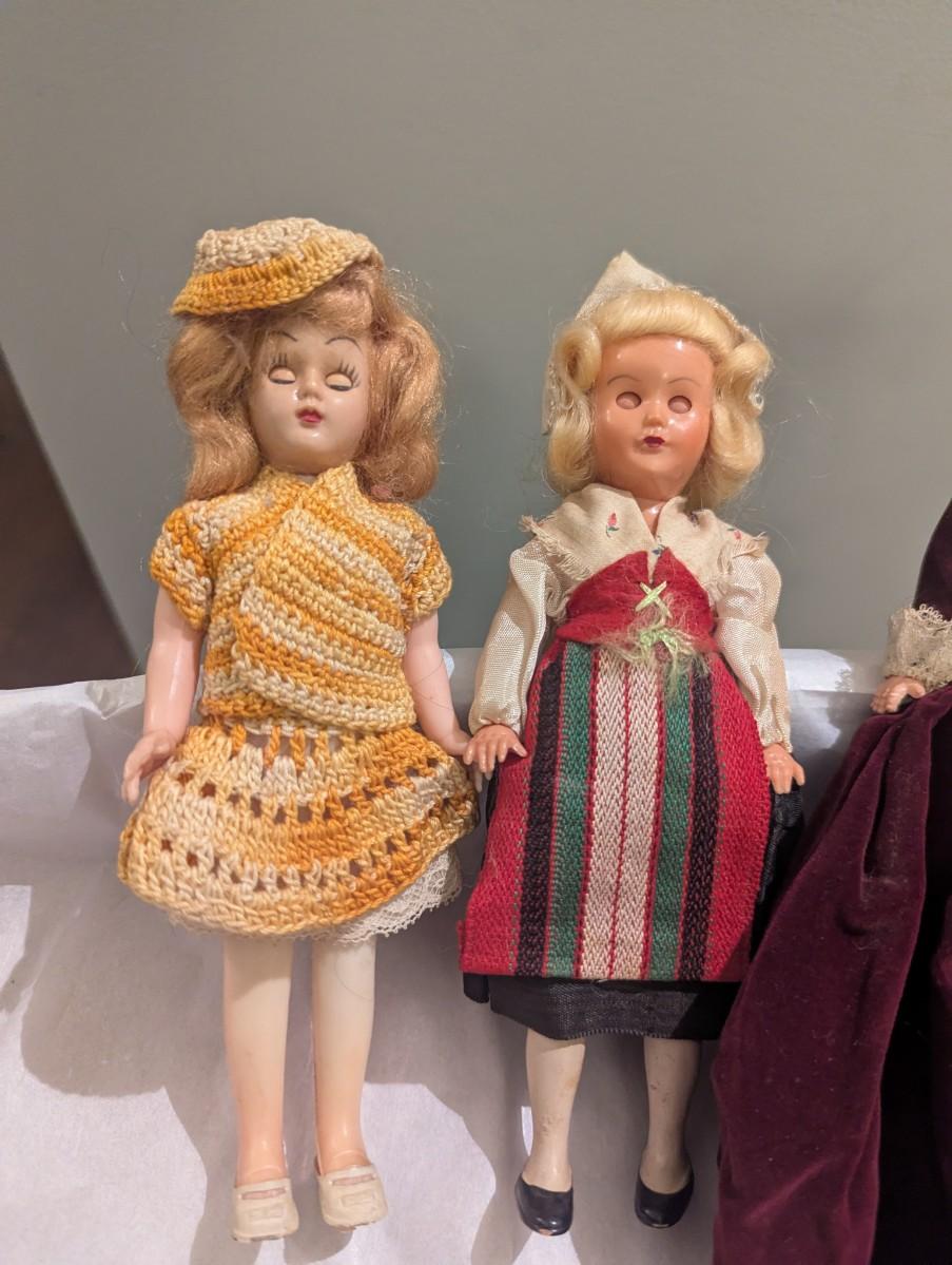Vintage Doll w/ Crocheted Dress & Formal Dress - Vintage Sweden Doll - Eyes Open & Close