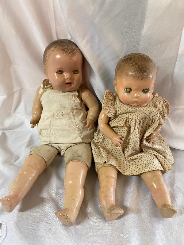 An Amish doll, cute girl doll, and a boy and girl dolls.