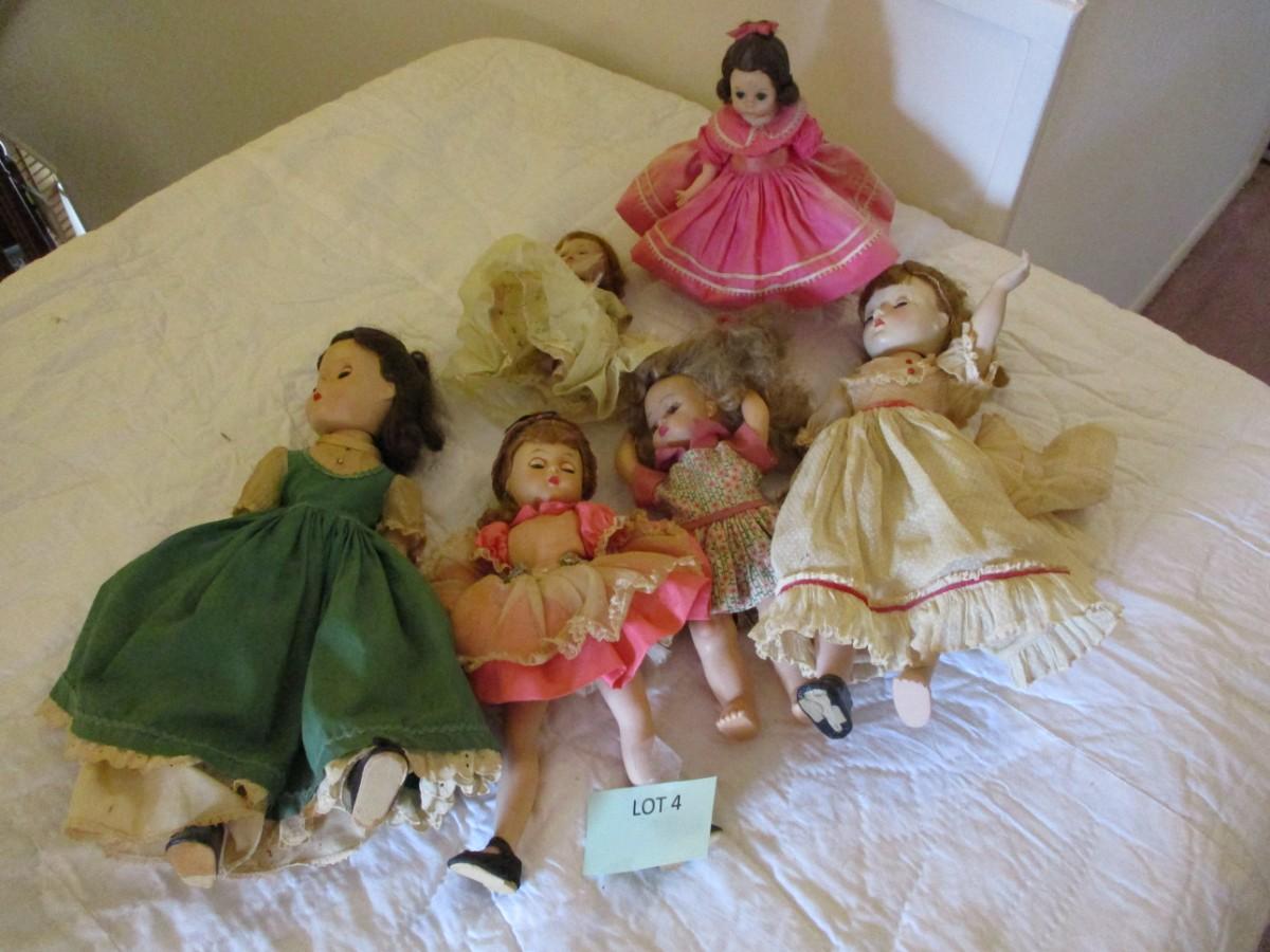 6 Vintage Plastic Dolls. Normal wear. 1 has no arms or legs.
