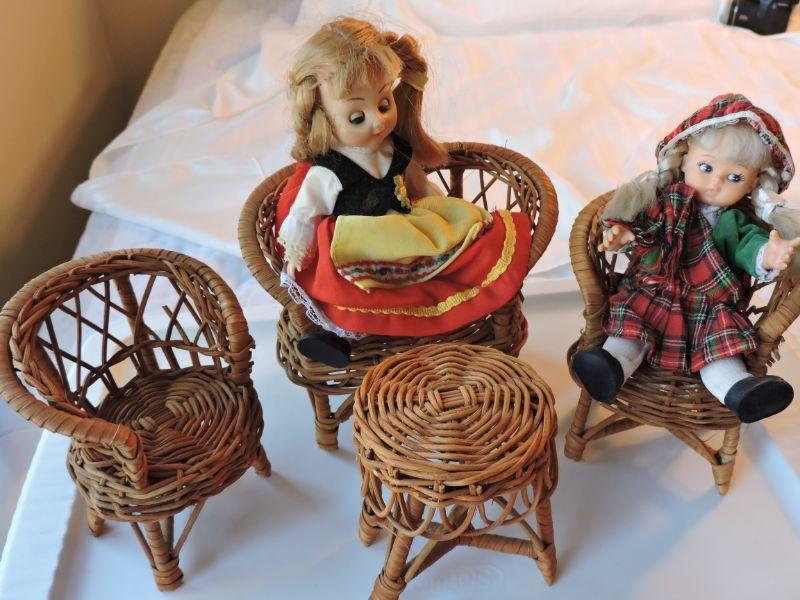 Vintage dolls from the 1980's and wicker set. **Please read Terms and Conditions before placing a bid. Pick up is Sunday, September 15, 2019 from 11am to 4pm and Tuesday, September 17 from 4pm-7pm in Sicklerville. All sales are final. All sales are as is, where is. Please review all photos. Any props included in photos are not included in listing. All measurements are approximate.