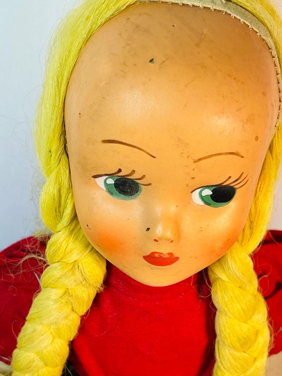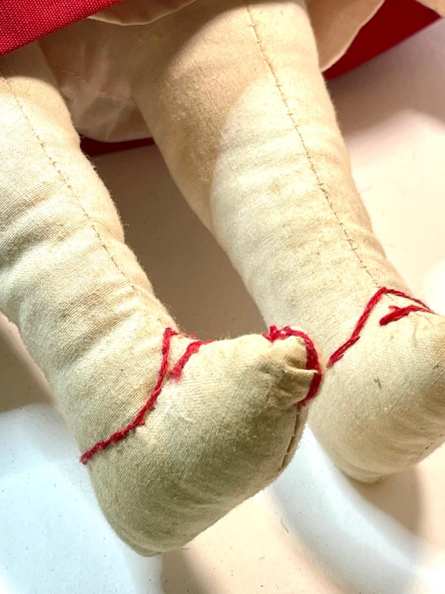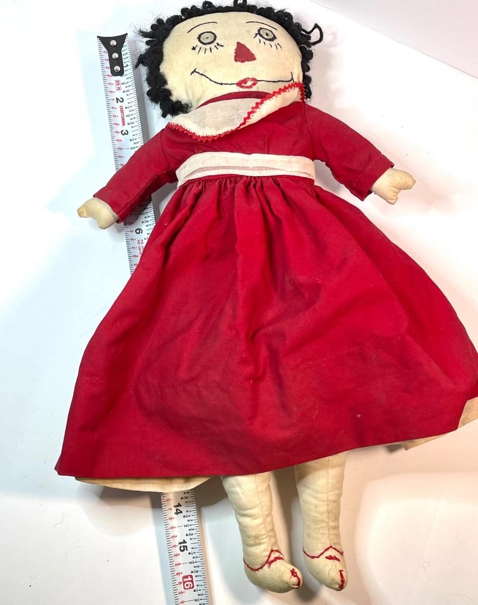 Precious Sutton doll made in England with sticker on bottom of foot. In good condition but clothing shows age and use. Some staining on cloth. Some dirt on face. See pics. The other I believe is a handmade doll. It’s precious and looks old also. The cloth shows age and use. Bet these dolls could tell some stories! Sutton dolls are prized by collectors. Though these two are in vintage condition, both are truly good for the age! Love these two!!