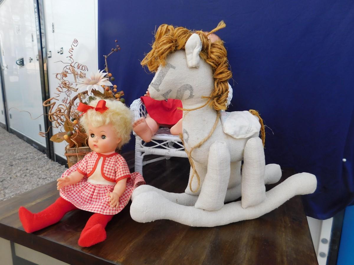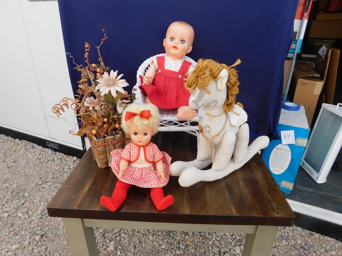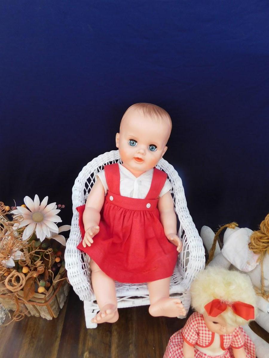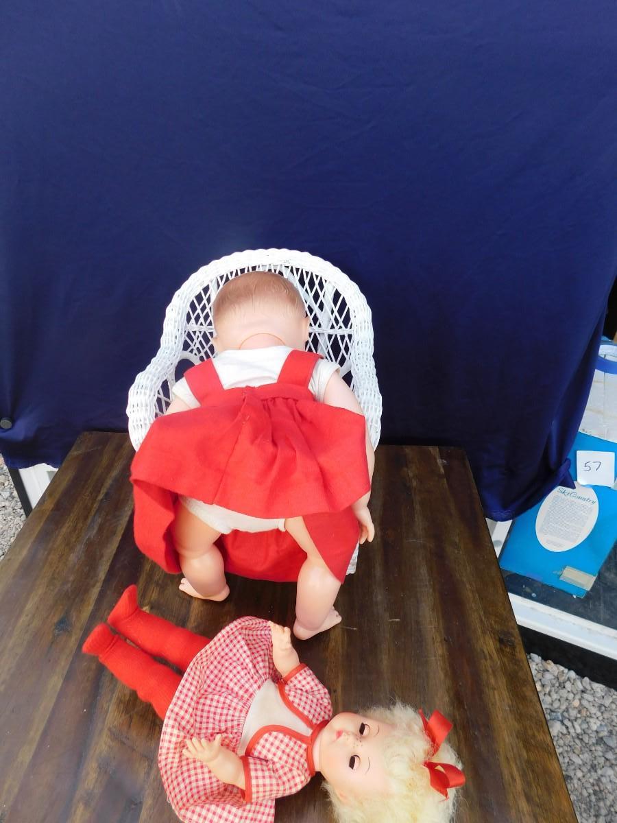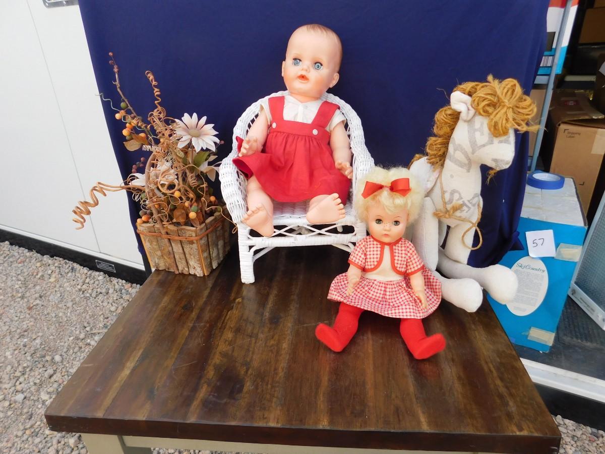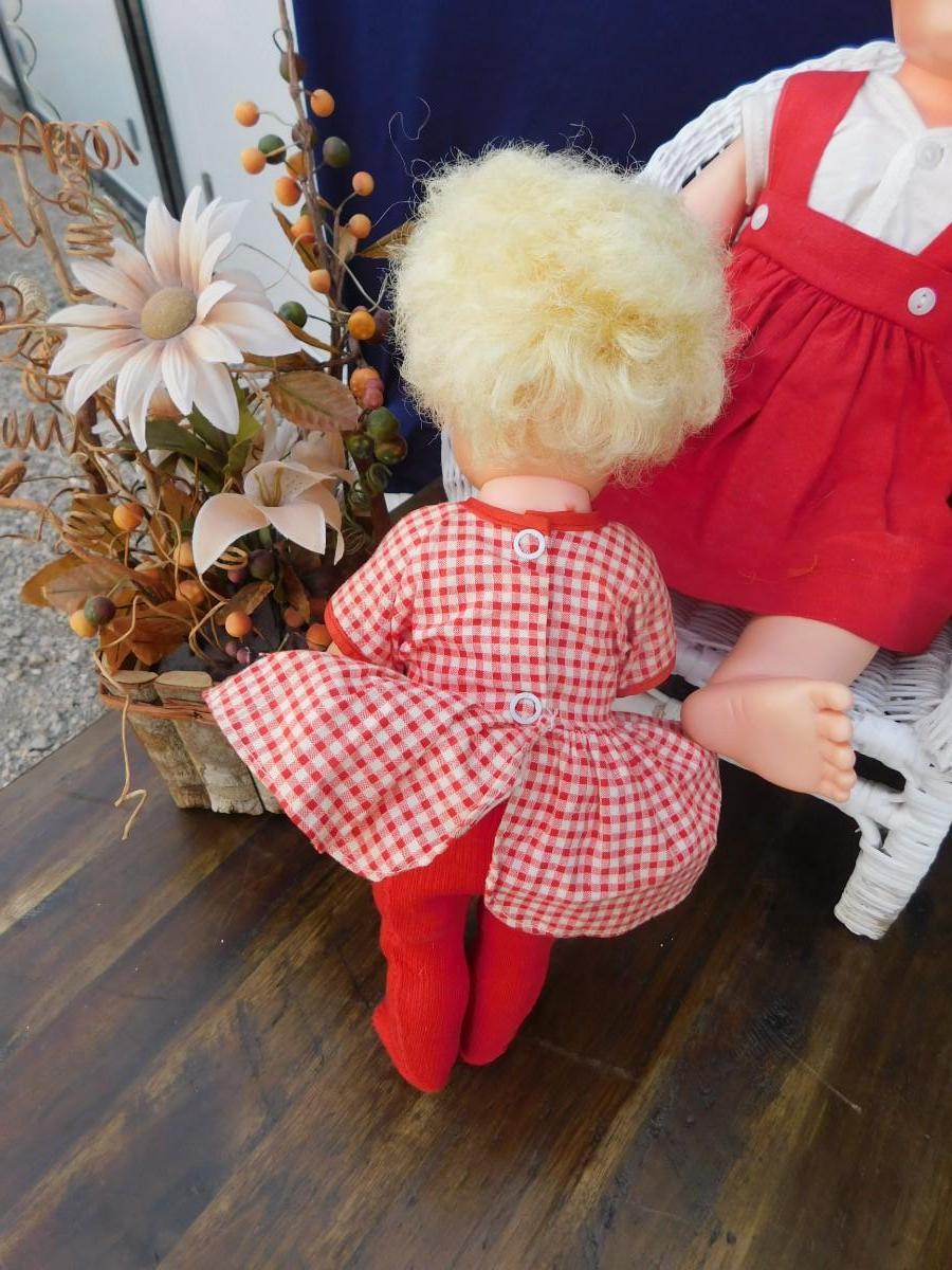 VINTAGE DOLLY'S IN RED AND ACCESSORIZING ITEMS OF DECOR