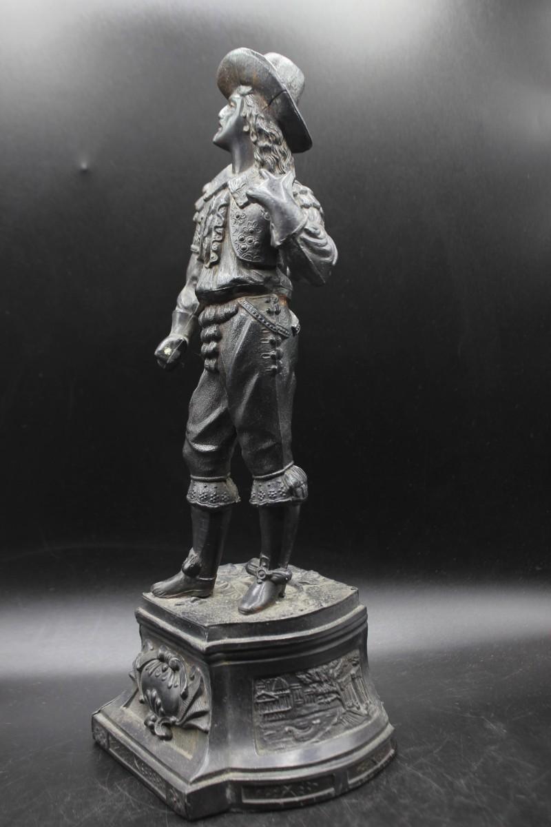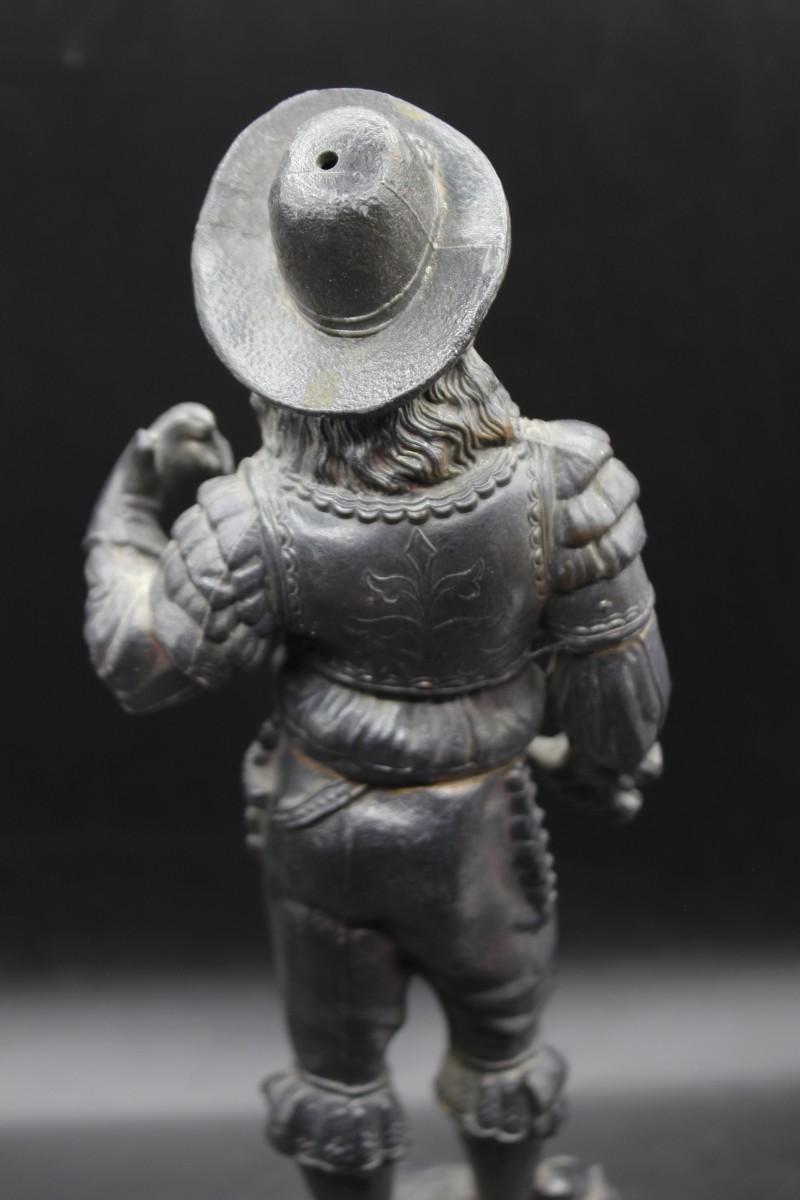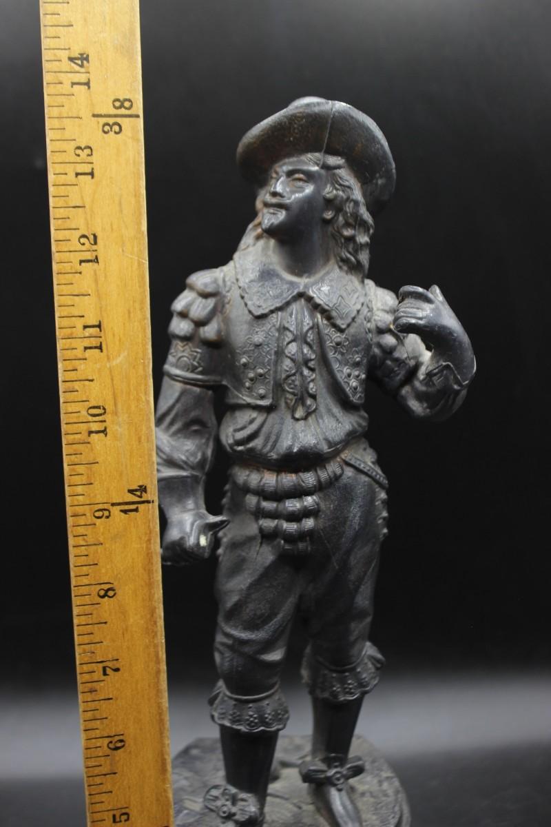 Antique 19th Century Ansonia Don Juan Cavalier Musketeer Spelter Clock Topper Statue, it appears that the musketeer was holding a sword at one point, but has been broken off at the hand. There is no other damage to the statue and is in good vintage condition, check pictures for more details and for sizing.