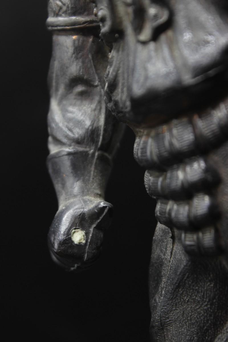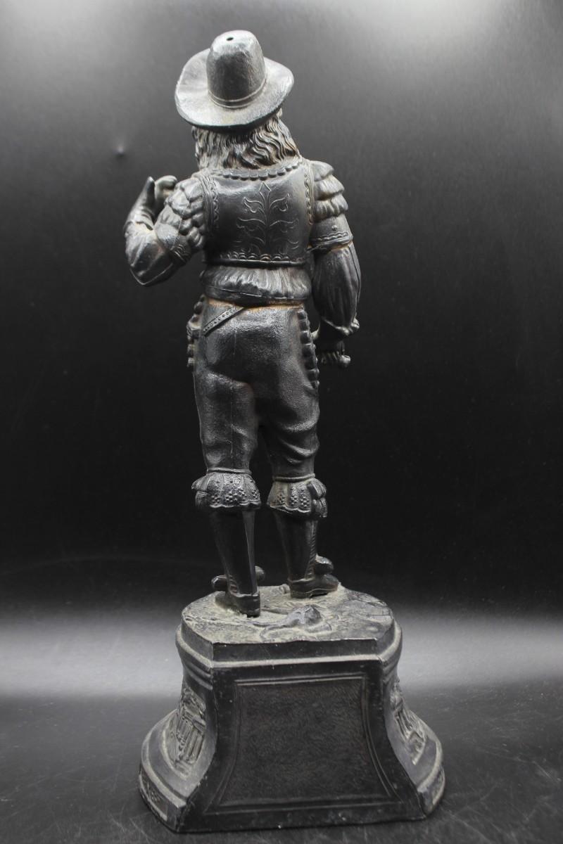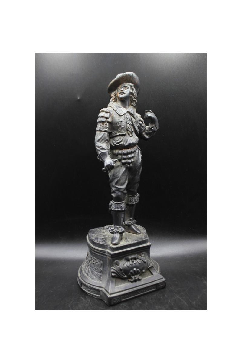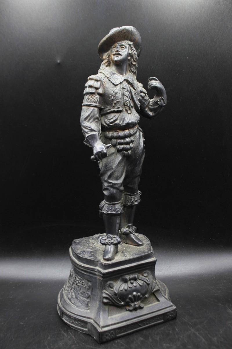 Antique 19th Century Ansonia Don Juan Cavalier Musketeer Spelter Clock Topper Statue, it appears that the musketeer was holding a sword at one point, but has been broken off at the hand. There is no other damage to the statue and is in good vintage condition, check pictures for more details and for sizing.