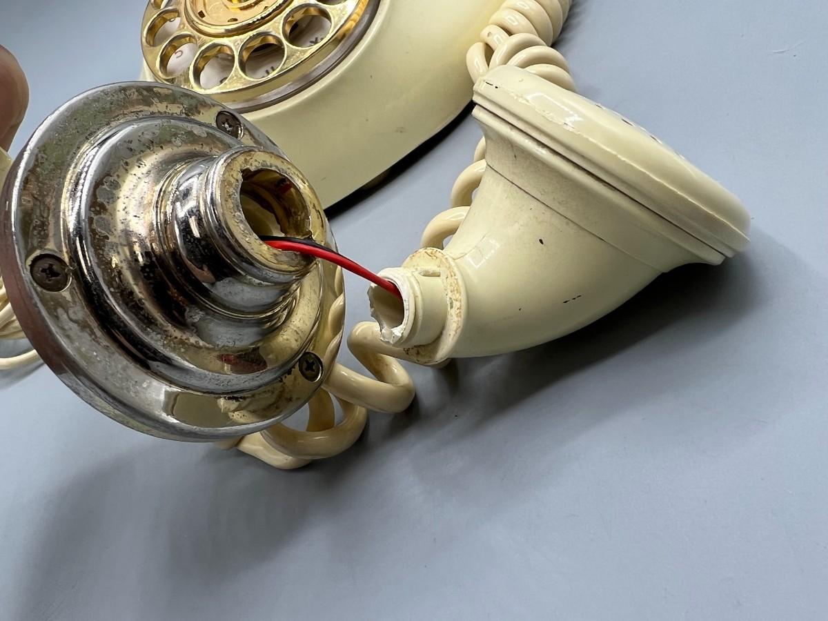 The receiver end of the telephone has been broken off, but can be put back. There is no other significant damage and is in overall fair vintage condition. Check pictures for more details and for sizing.