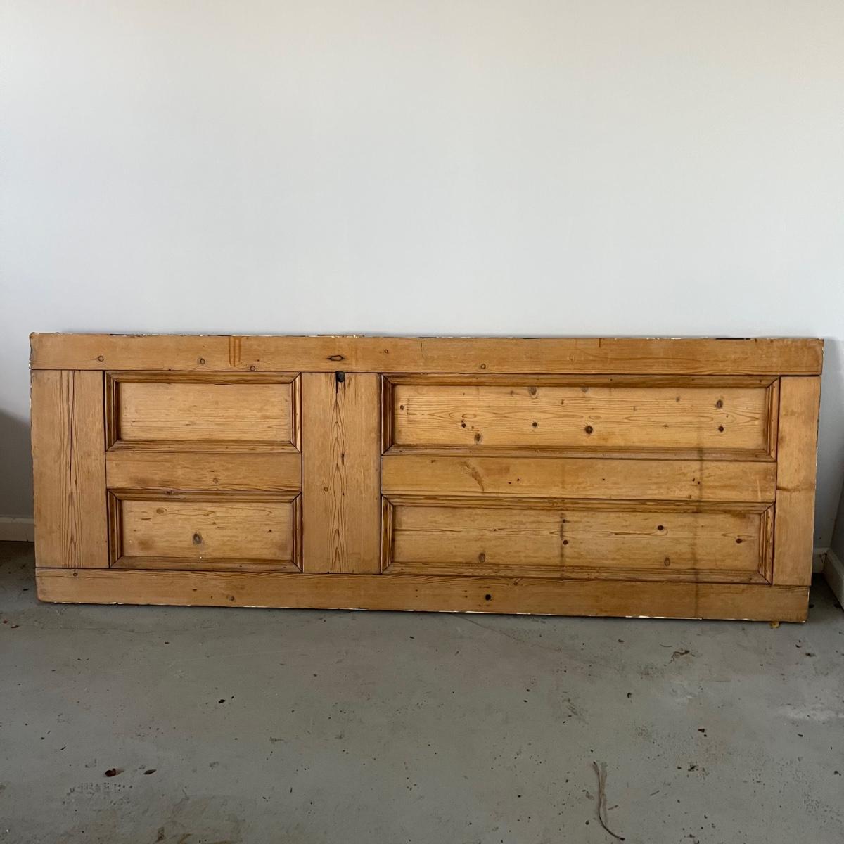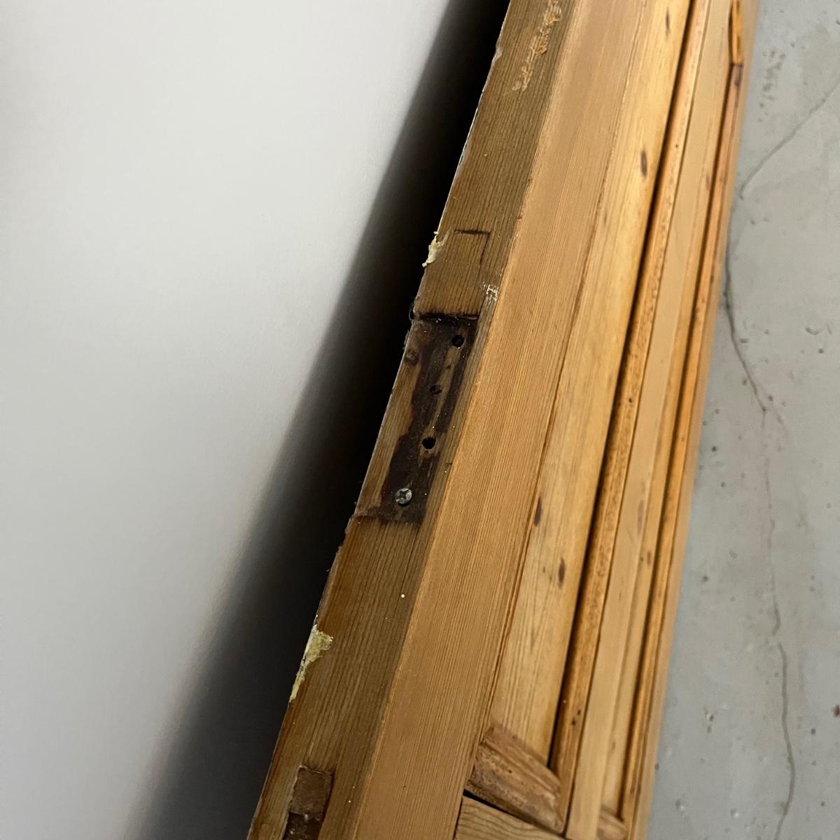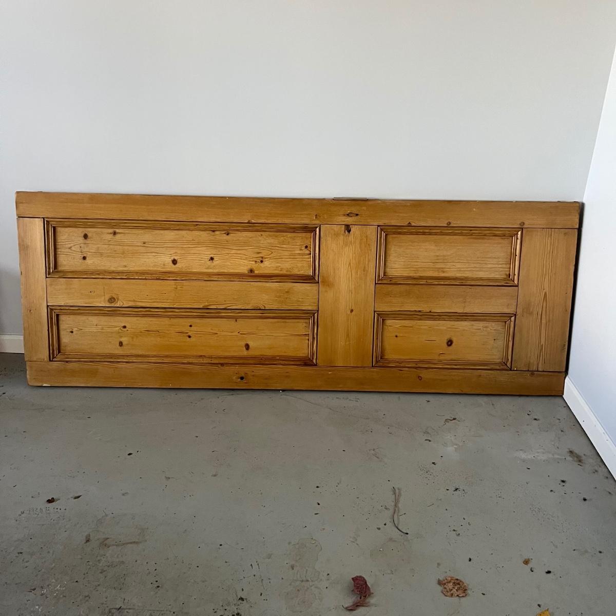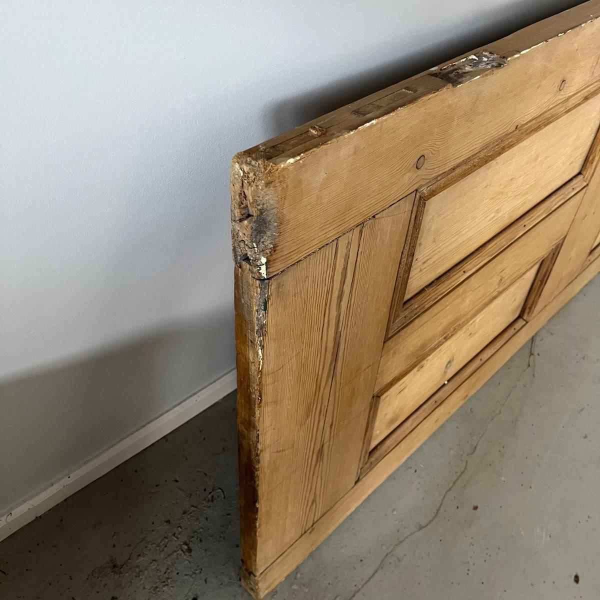 Lot includes a vintage wooden door that has been used as headboard. Door measures 1.5” x 29.5” x 82.5”. Door has some nicks, gouges and scratches that all add to its rustic charm. See last photo for an example of how it was used as a headboard. All other items in that photo are not included in this lot.