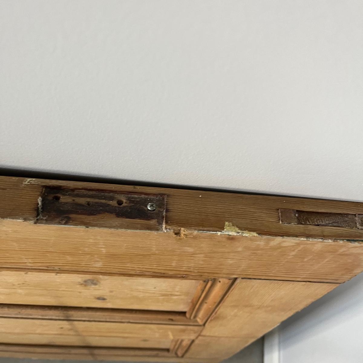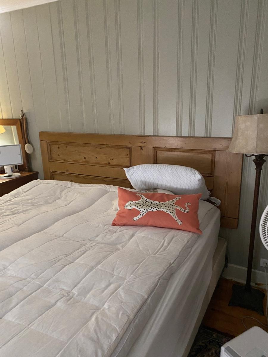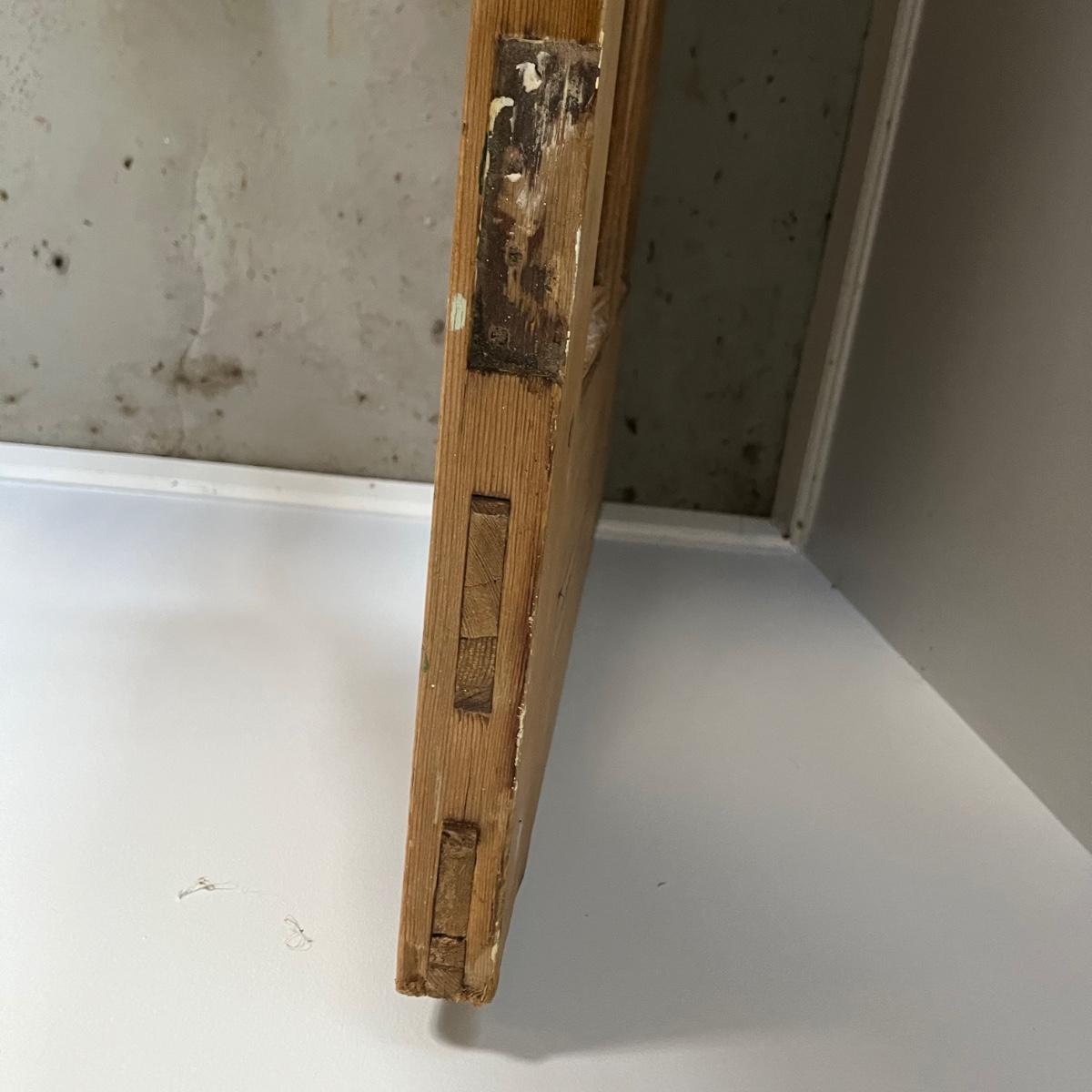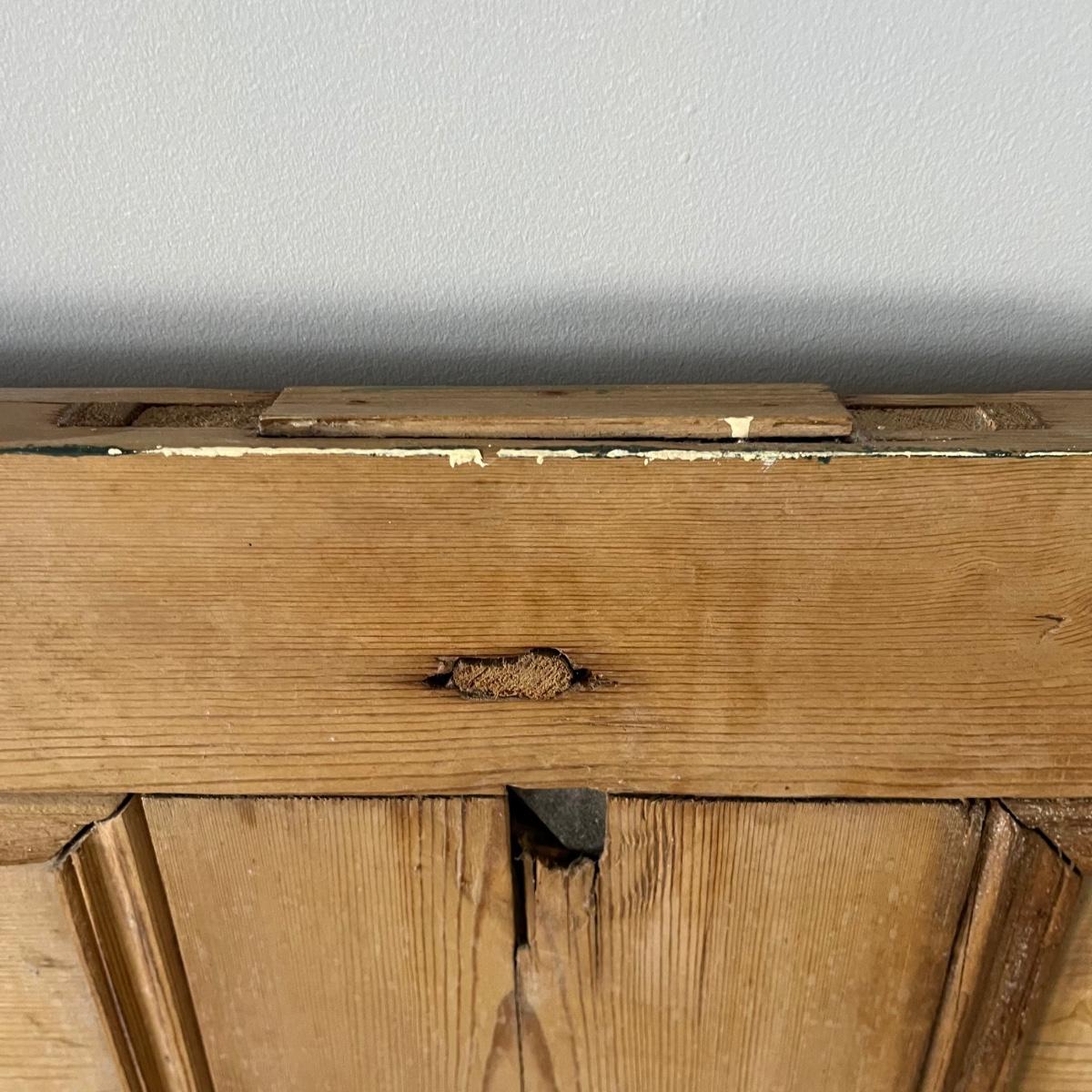 Lot includes a vintage wooden door that has been used as headboard. Door measures 1.5” x 29.5” x 82.5”. Door has some nicks, gouges and scratches that all add to its rustic charm. See last photo for an example of how it was used as a headboard. All other items in that photo are not included in this lot.