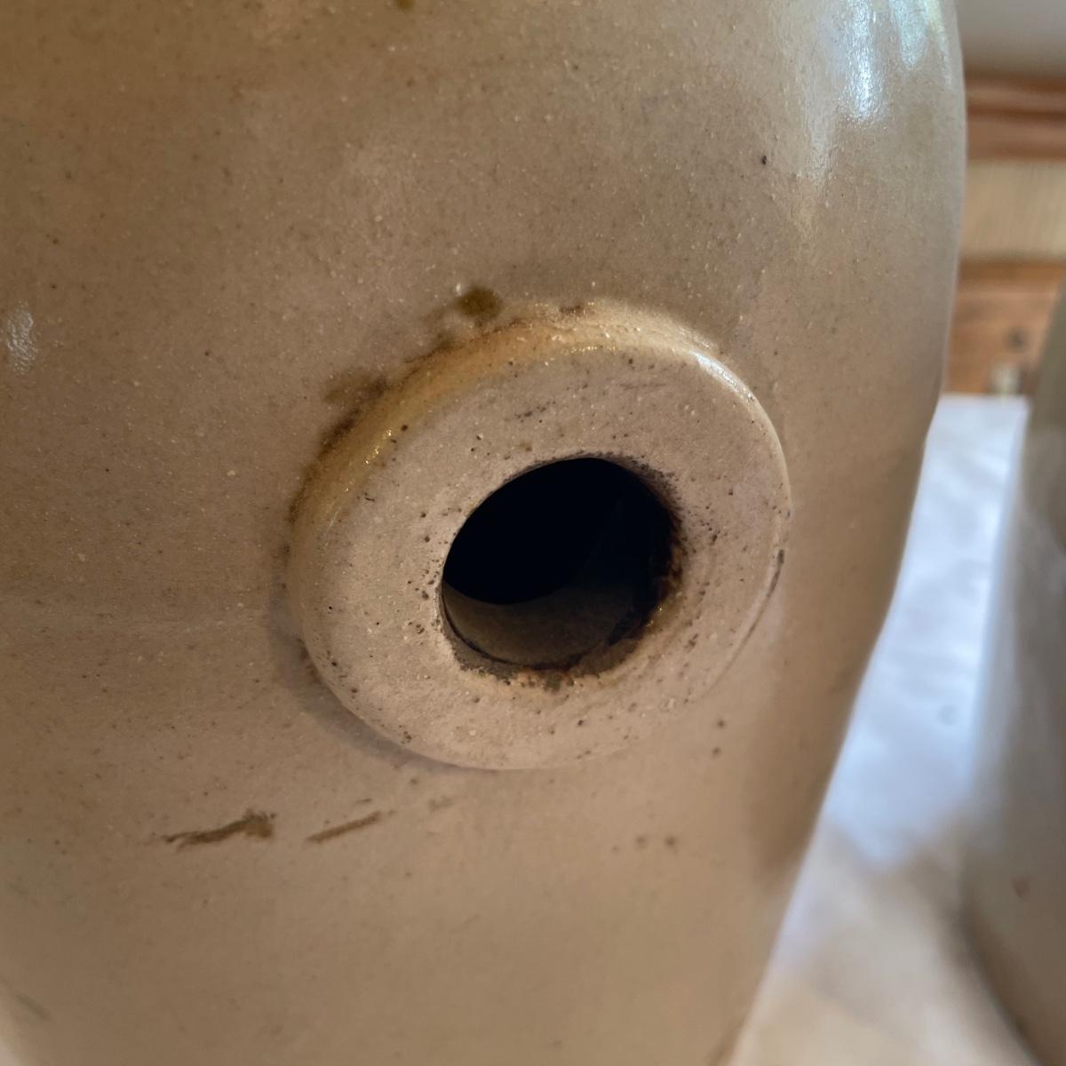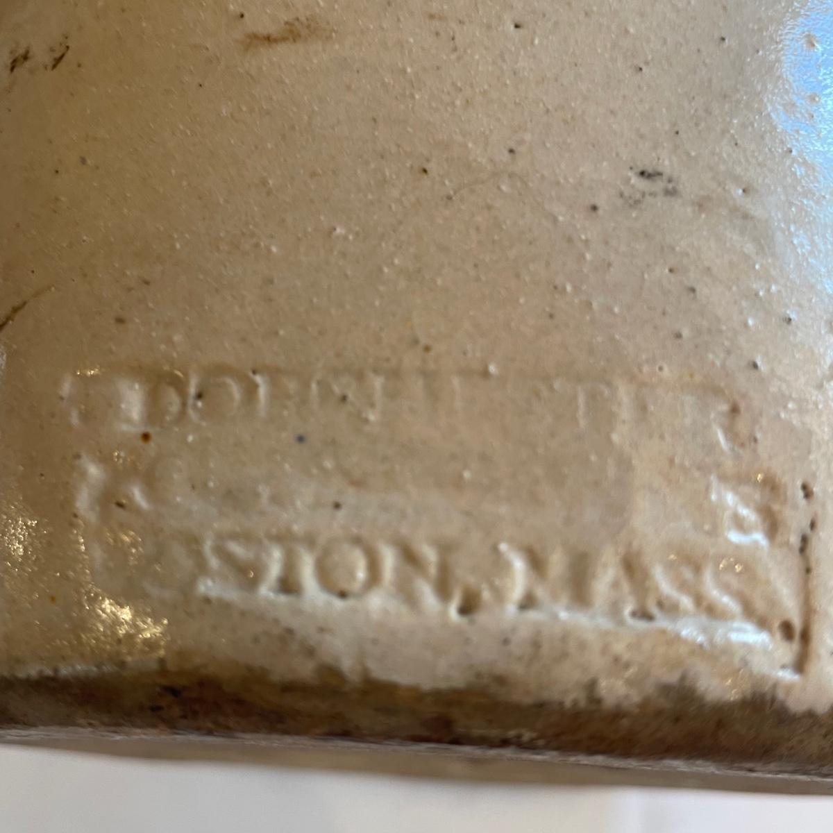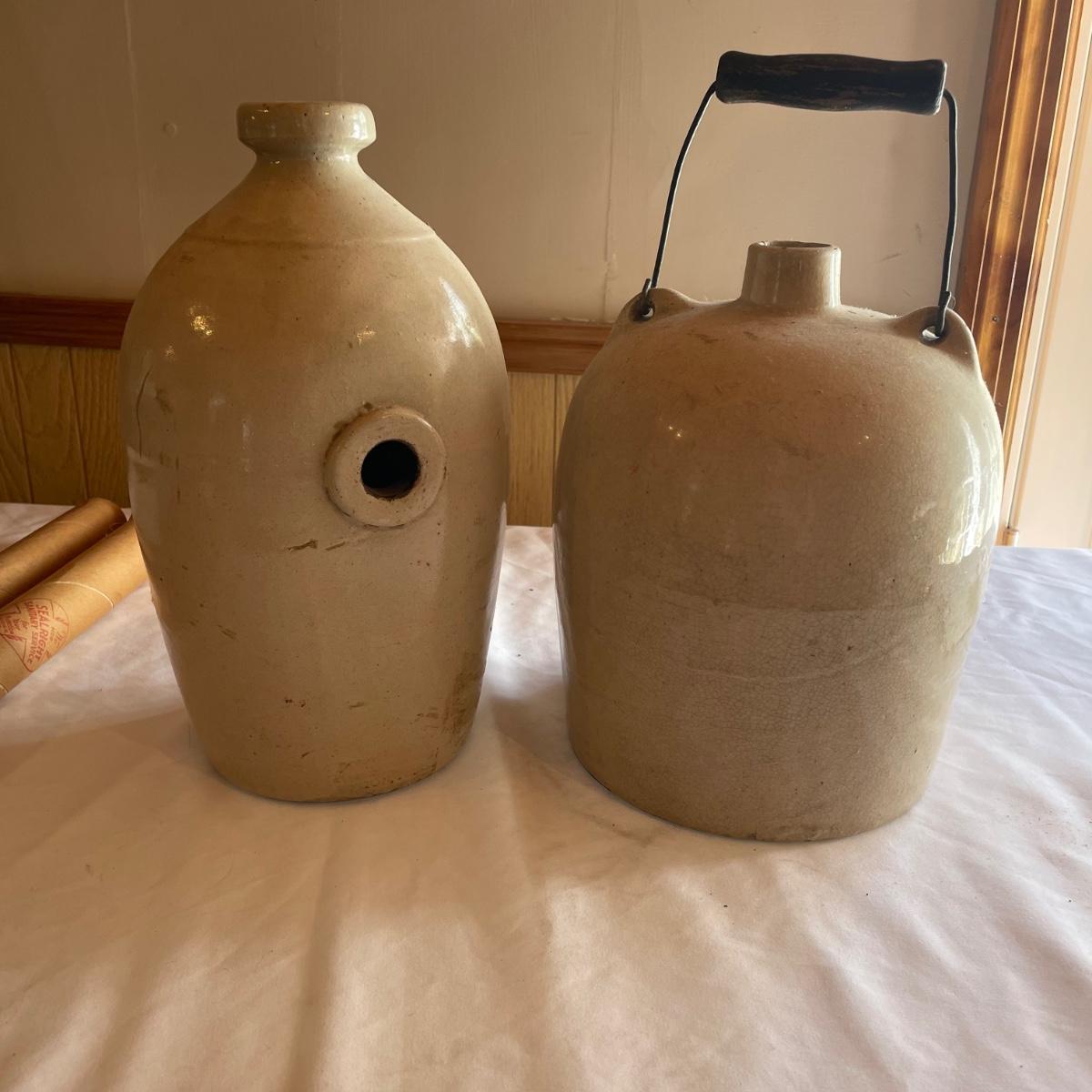 This vintage Dorchester foot warmer has been paired with another stoneware item that is a jug with a wood on metal handle that has no makers mark. It measures 7” d x 10” tall. Both items are in great condition.